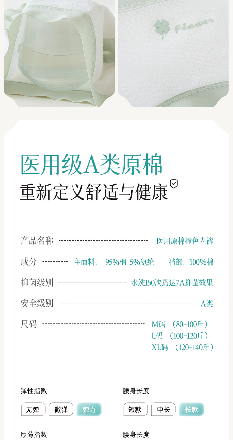 의료 면 7A 세균성 면 긴 Crotch 면 비 형광 통기성 높은 탄성 중간 허리 여성 브리프