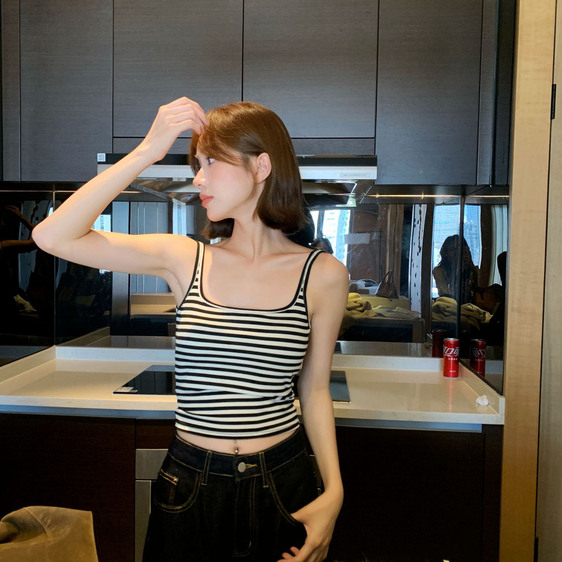 새로운 한국식 슬림핏 스트라이프 U 자형 스퀘어 칼라 슬림핏 올매치 베이스 통합 아우터 카미솔 조끼스토어 가기