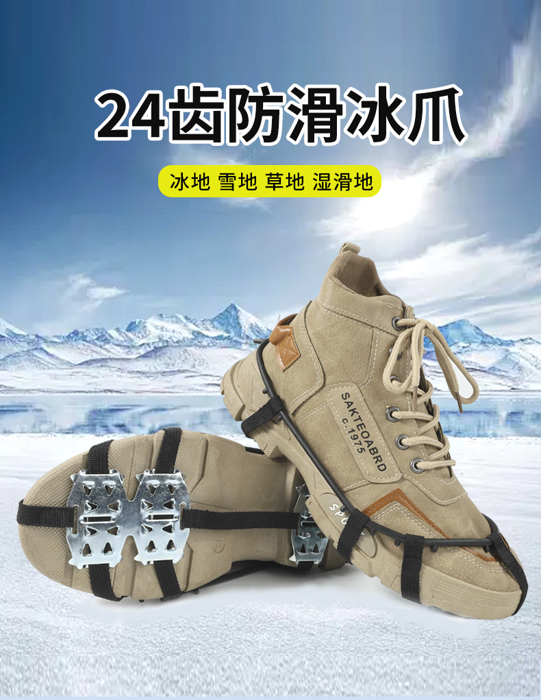 24 치아 얼음 발톱 미끄럼 신발 커버 야외 눈 겨울 스파이크 단독 등반 눈 발톱 노인 어린이 얼음 야외