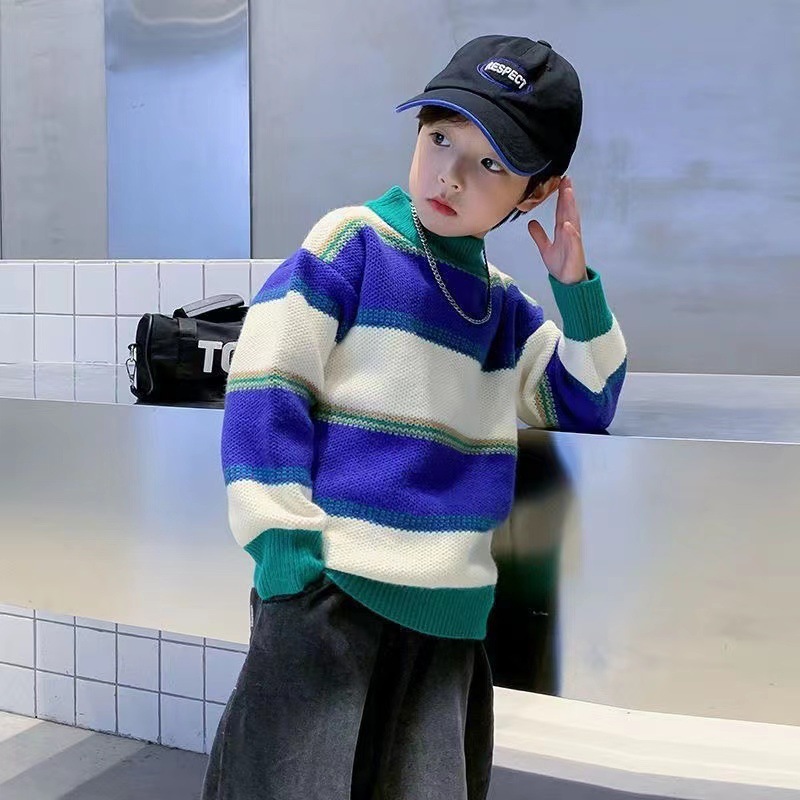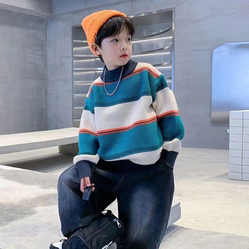 소년 스웨터 가을과 겨울 2023 새로운 어린이 니트 스웨터 스트라이프 겨울 두꺼운 소년의 아기베이스 셔츠스토어 가기