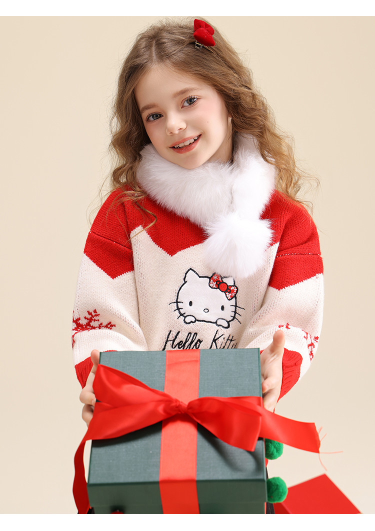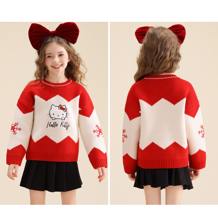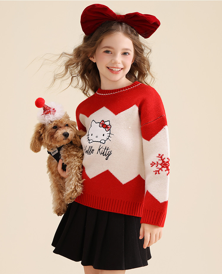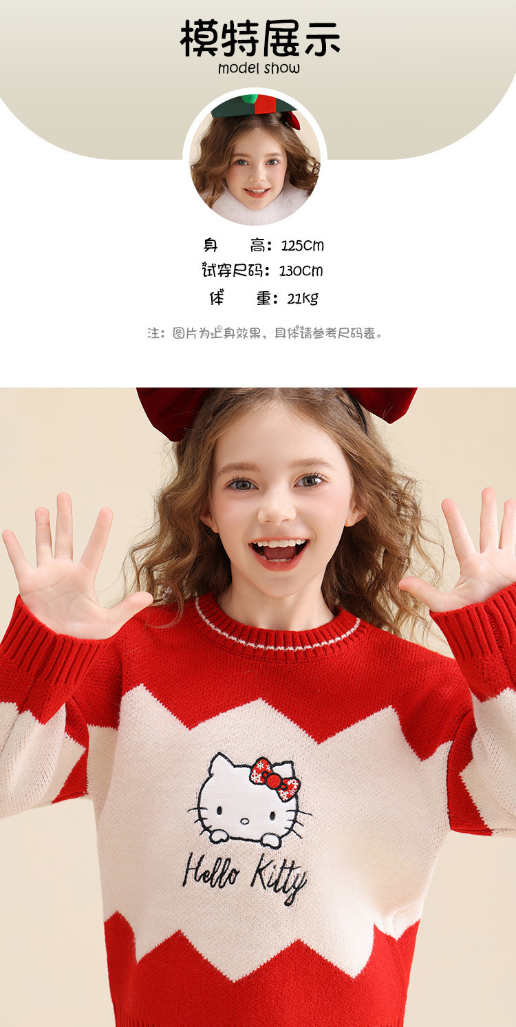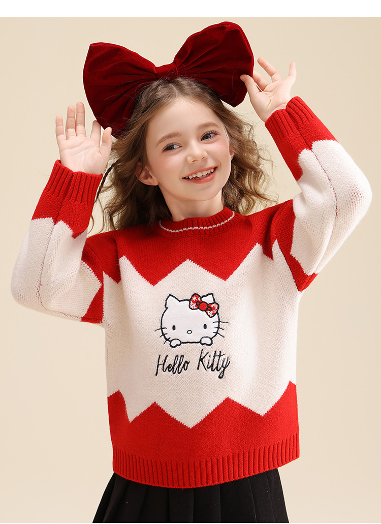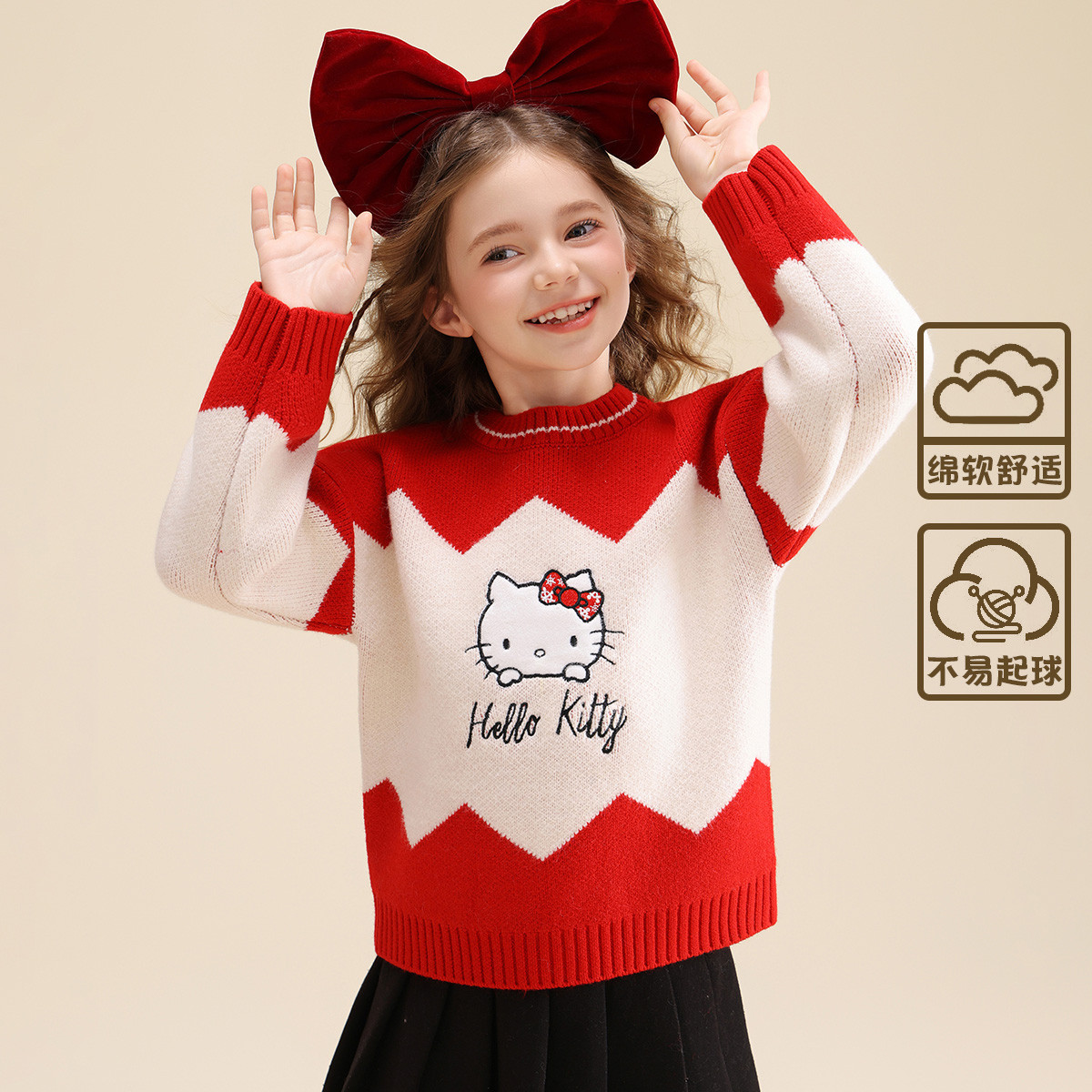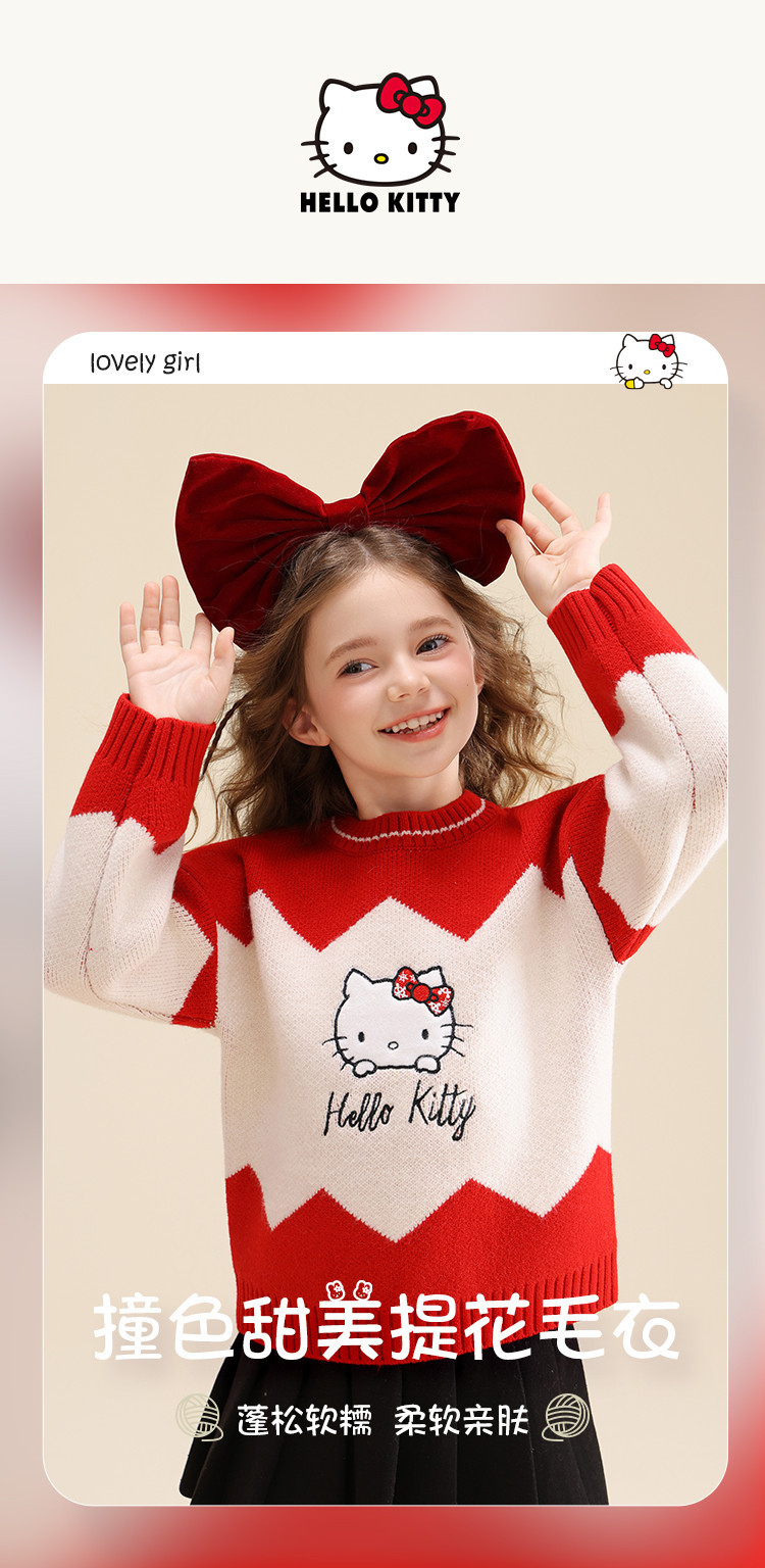 HelloKitty cuhk 소녀 가을과 겨울 스웨터 2024 대조 색상 달콤한 바람 따뜻하고 편안한 100 면