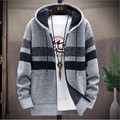 2025 남성 재킷 가을 겨울 신상품 남성용 플리스 안감 두꺼운 배색 후드 니트 재킷 재고 있음