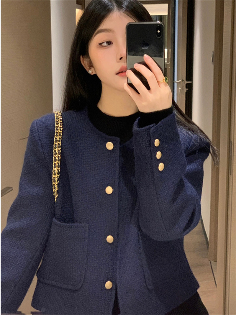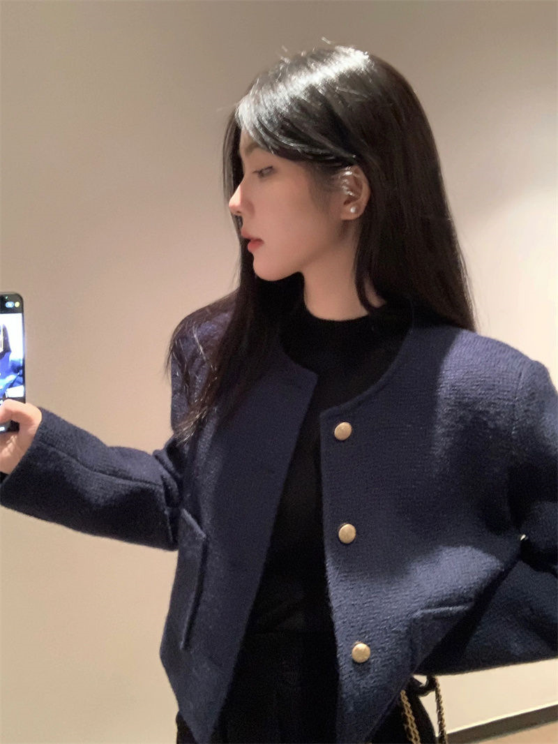 올해 가을과 겨울 인기 슈퍼 잘 생긴 블루 xiangfeng 짧은 코트 틈새 컴팩트 디자인 재킷 여성 한국어 버전