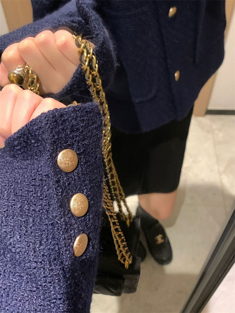 올해 가을과 겨울 인기 슈퍼 잘 생긴 블루 xiangfeng 짧은 코트 틈새 컴팩트 디자인 재킷 여성 한국어 버전스토어 가기