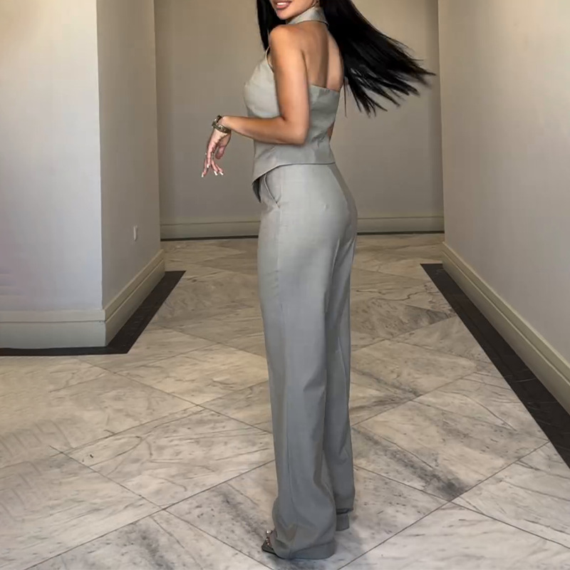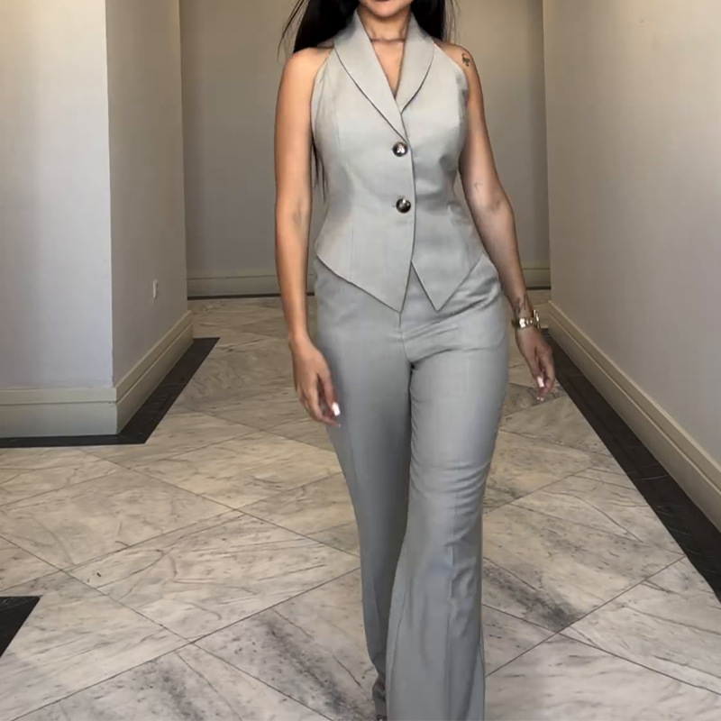 2025 여름 유럽과 미국의 대외 무역 여성 국경 새로운 패션 통근 조끼 스트레이트 바지 전문 세트
