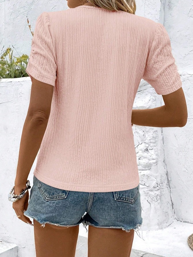 2025 유럽과 미국 국경 여성 의류 아마존 독립 역 봄과 여름 새로운 라운드 넥 패션 주름 짧은 소매 티셔츠 재킷스토어 가기