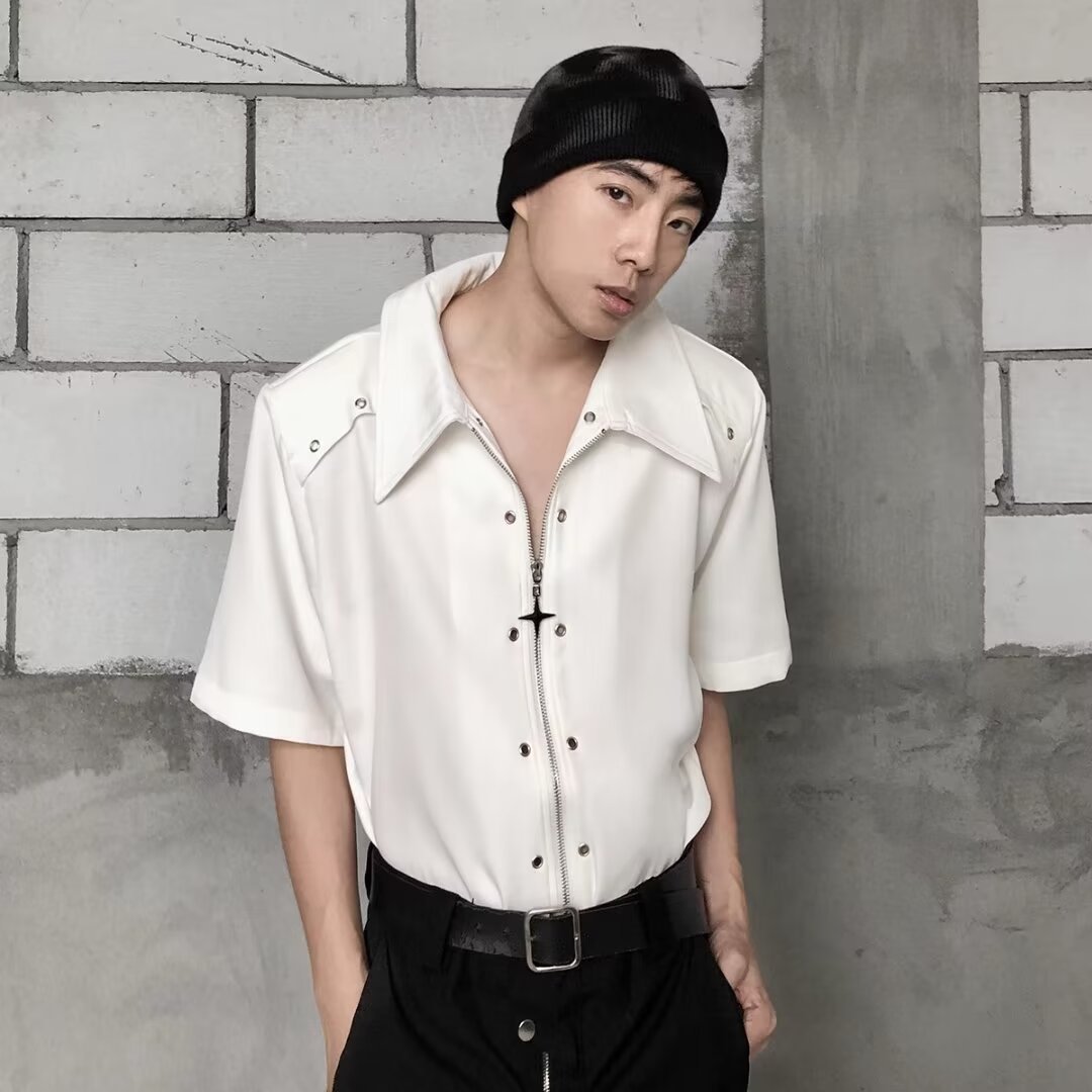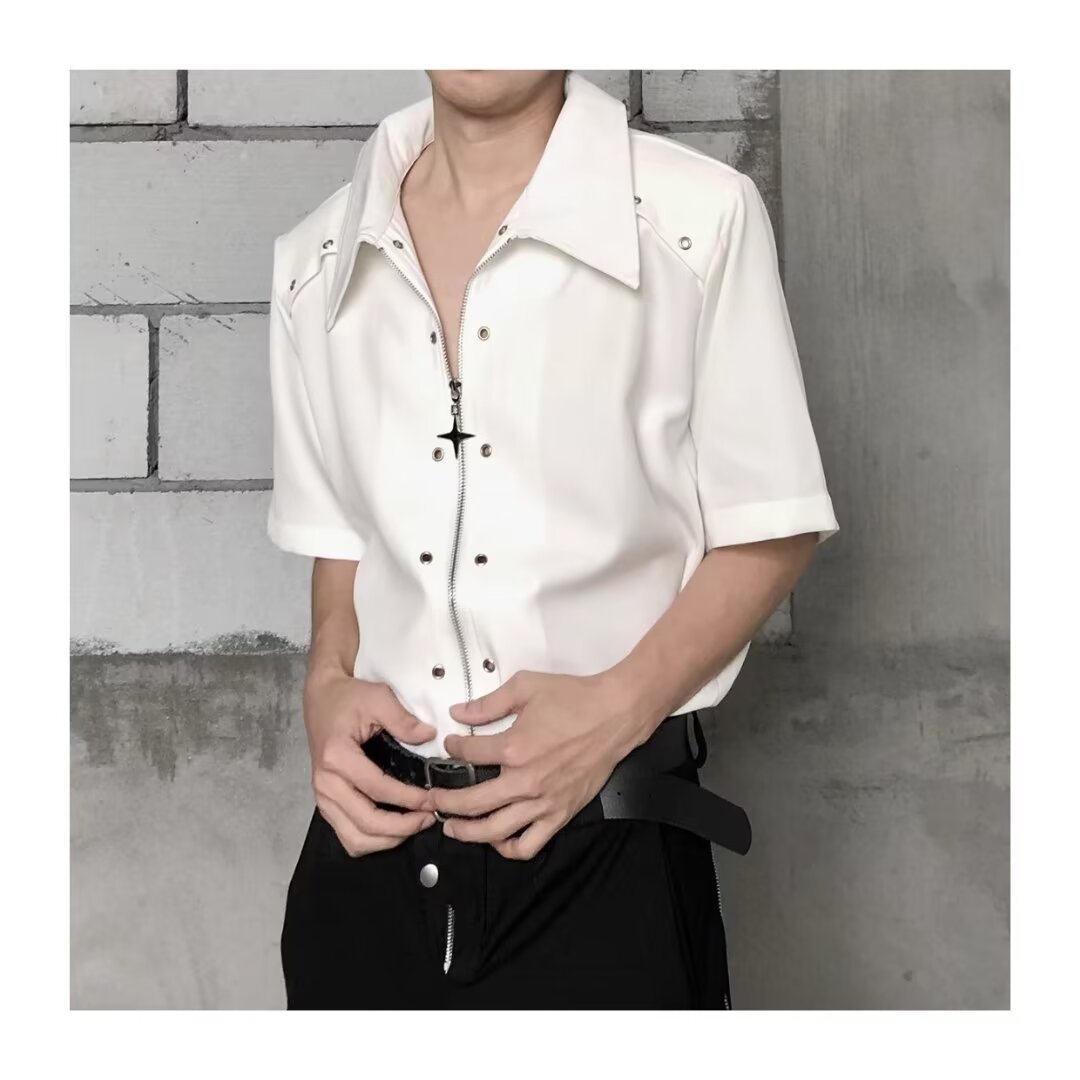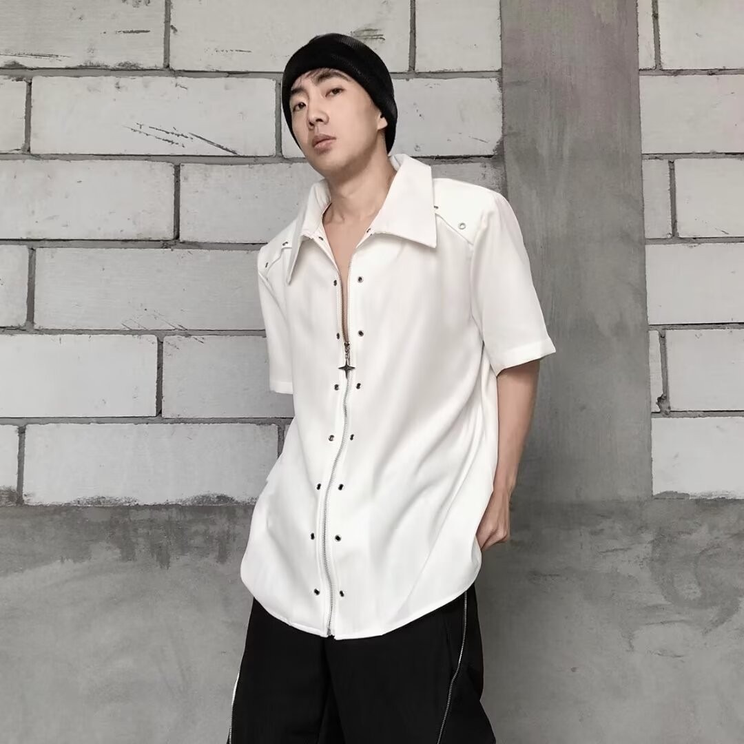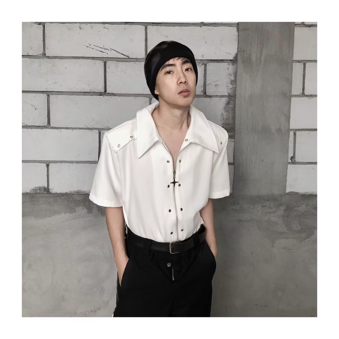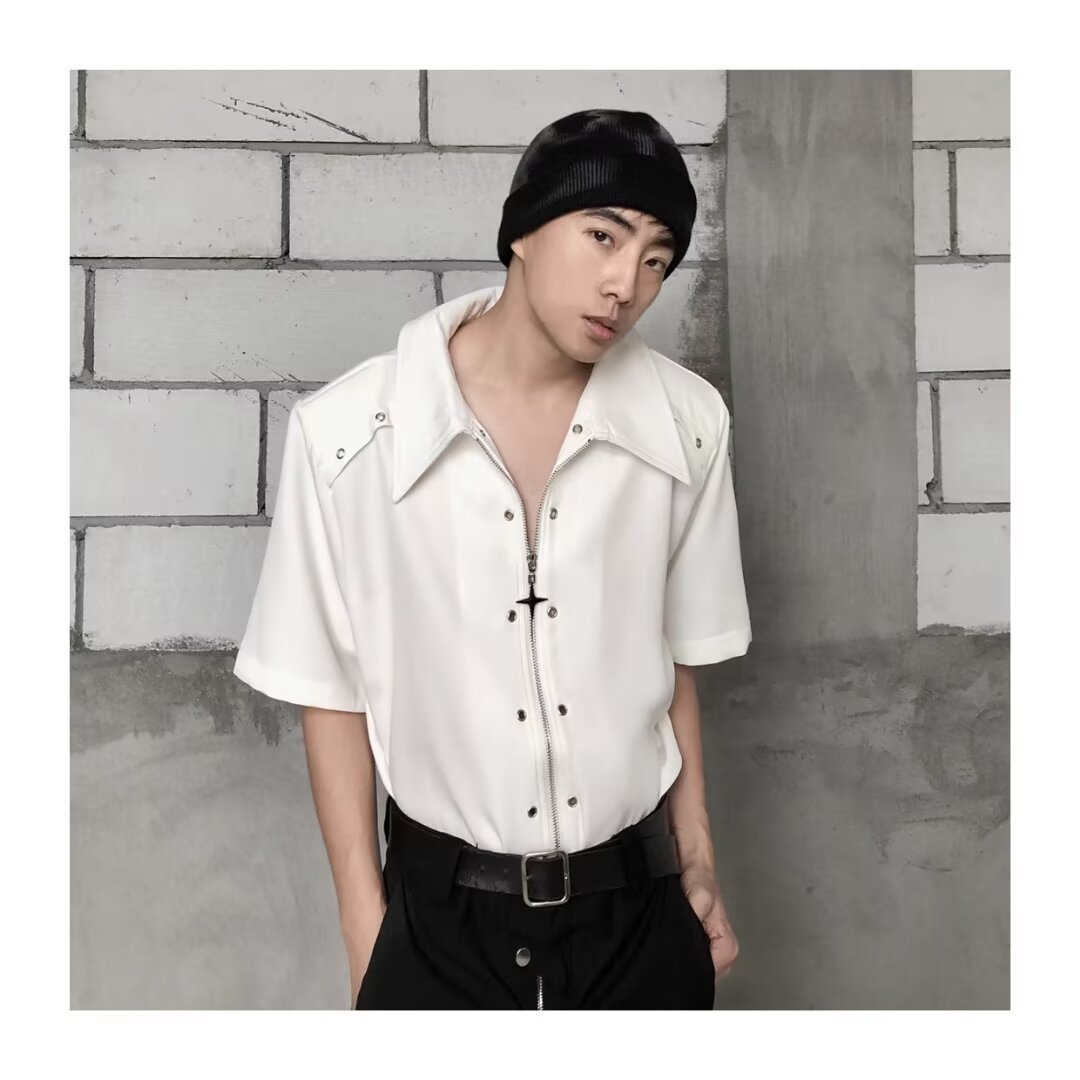 디자인 센스 옷깃 짧은 소매 셔츠 남자의 2024 여름 새로운 패션 브랜드 하이 스트리트 루즈 하이 센스 하프 슬리브 셔츠