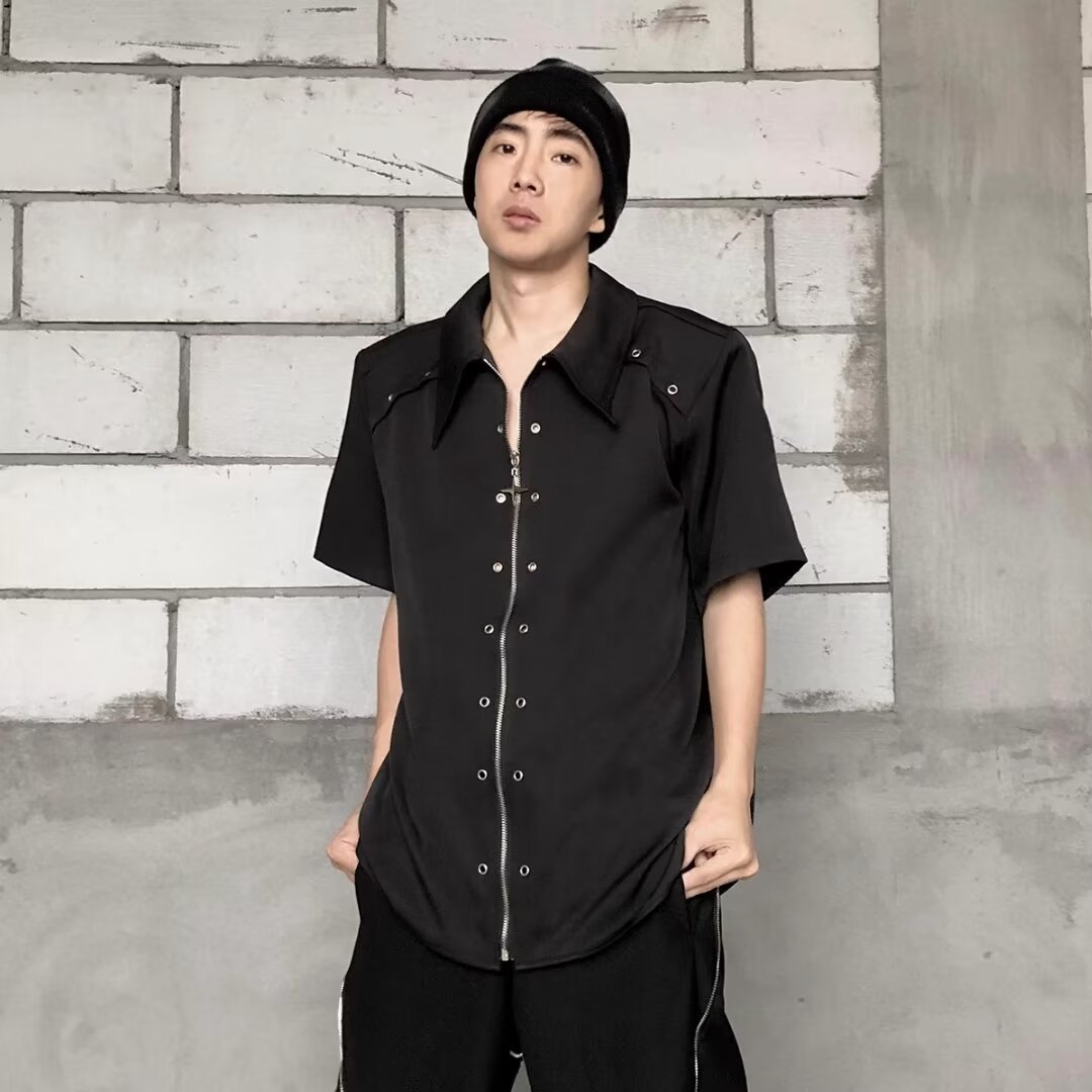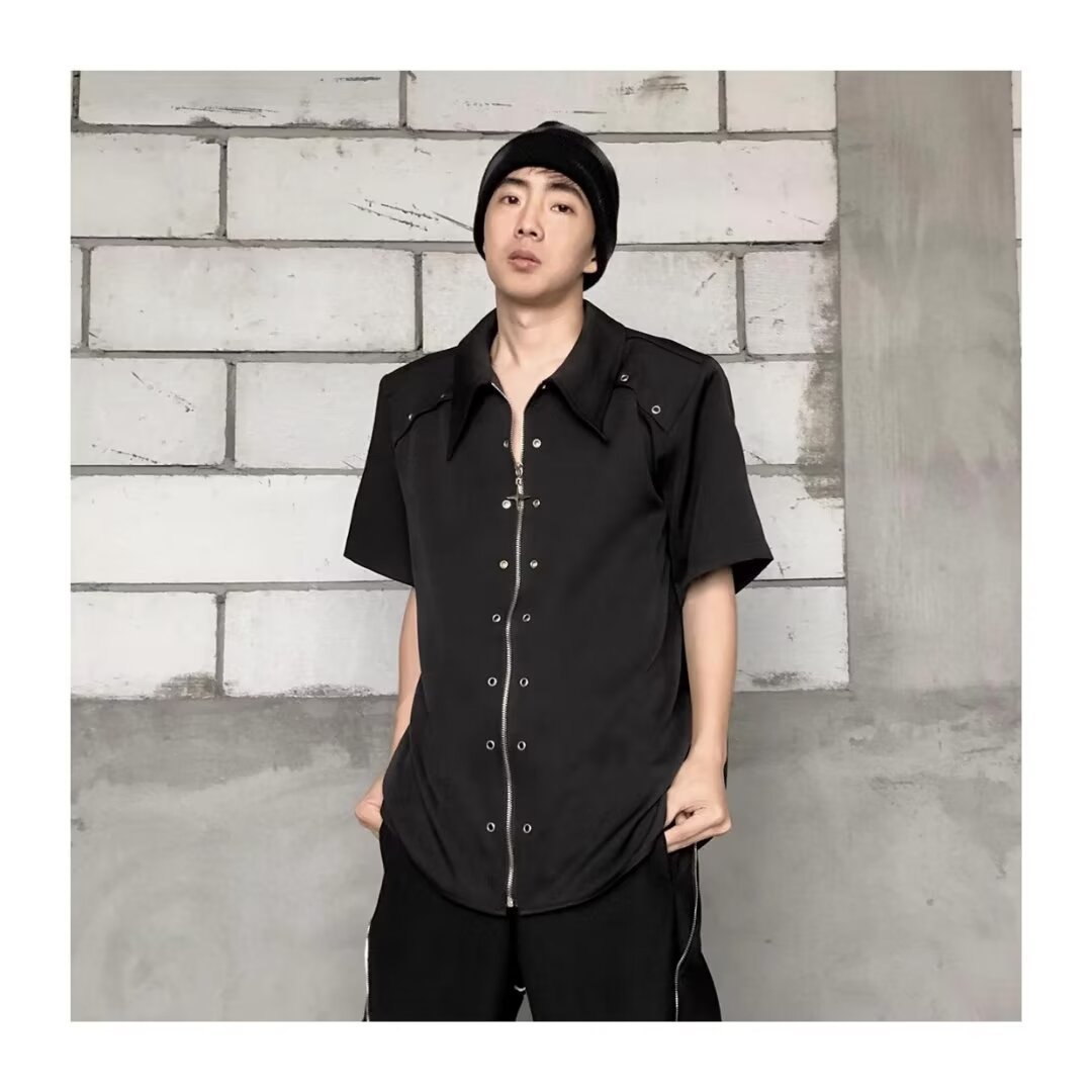 디자인 센스 옷깃 짧은 소매 셔츠 남자의 2024 여름 새로운 패션 브랜드 하이 스트리트 루즈 하이 센스 하프 슬리브 셔츠스토어 가기