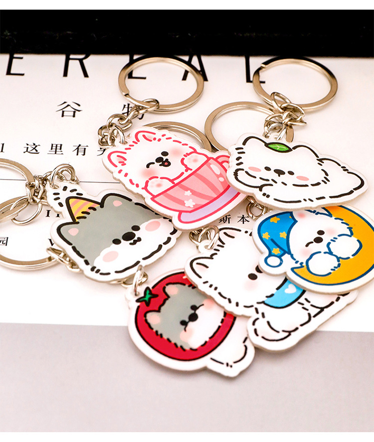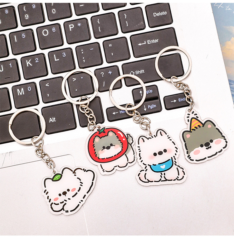 2025 귀여운 웨스트 하이랜드 키 체인 만화 아크릴 개 키링 학생 높은 가치 배낭 펜던트스토어 가기
