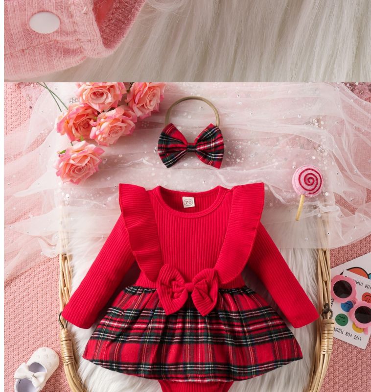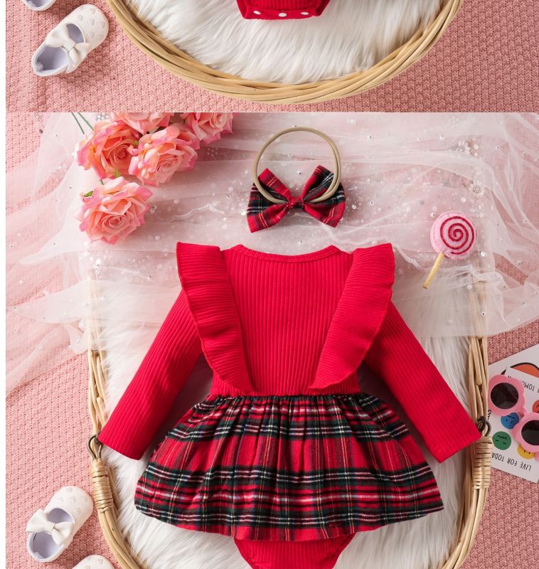아마존 폭발 아기 점프 수트 활 크리스마스 긴 소매 옷 유럽과 미국 여성의 빨간 격자 무늬 가방 방귀 옷스토어 가기