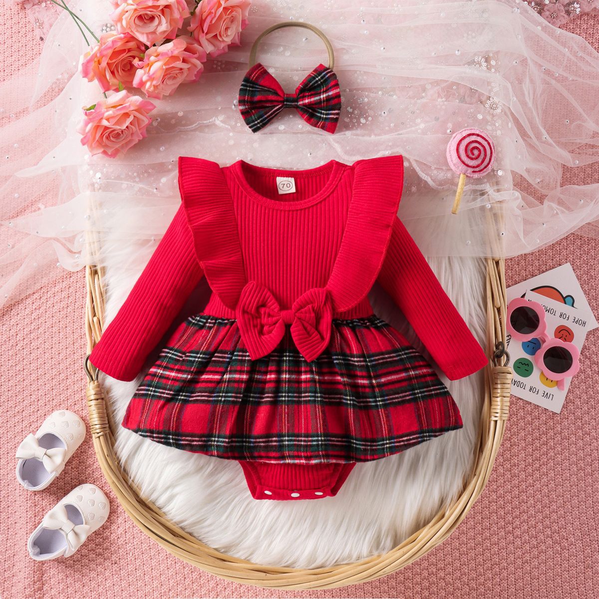 아마존 폭발 아기 점프 수트 활 크리스마스 긴 소매 옷 유럽과 미국 여성의 빨간 격자 무늬 가방 방귀 옷