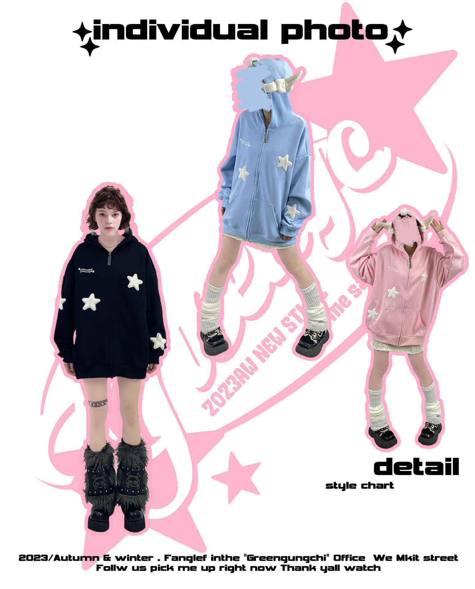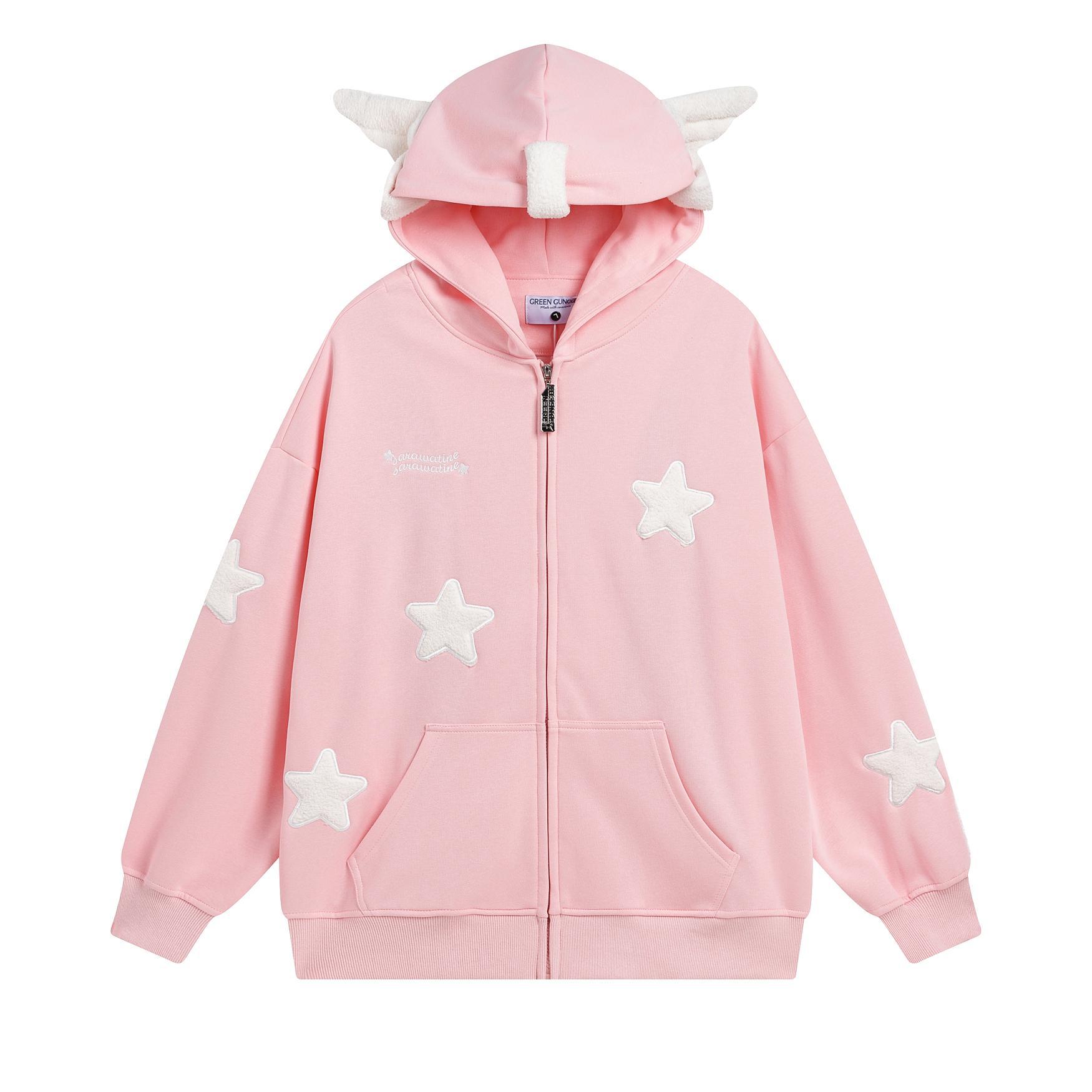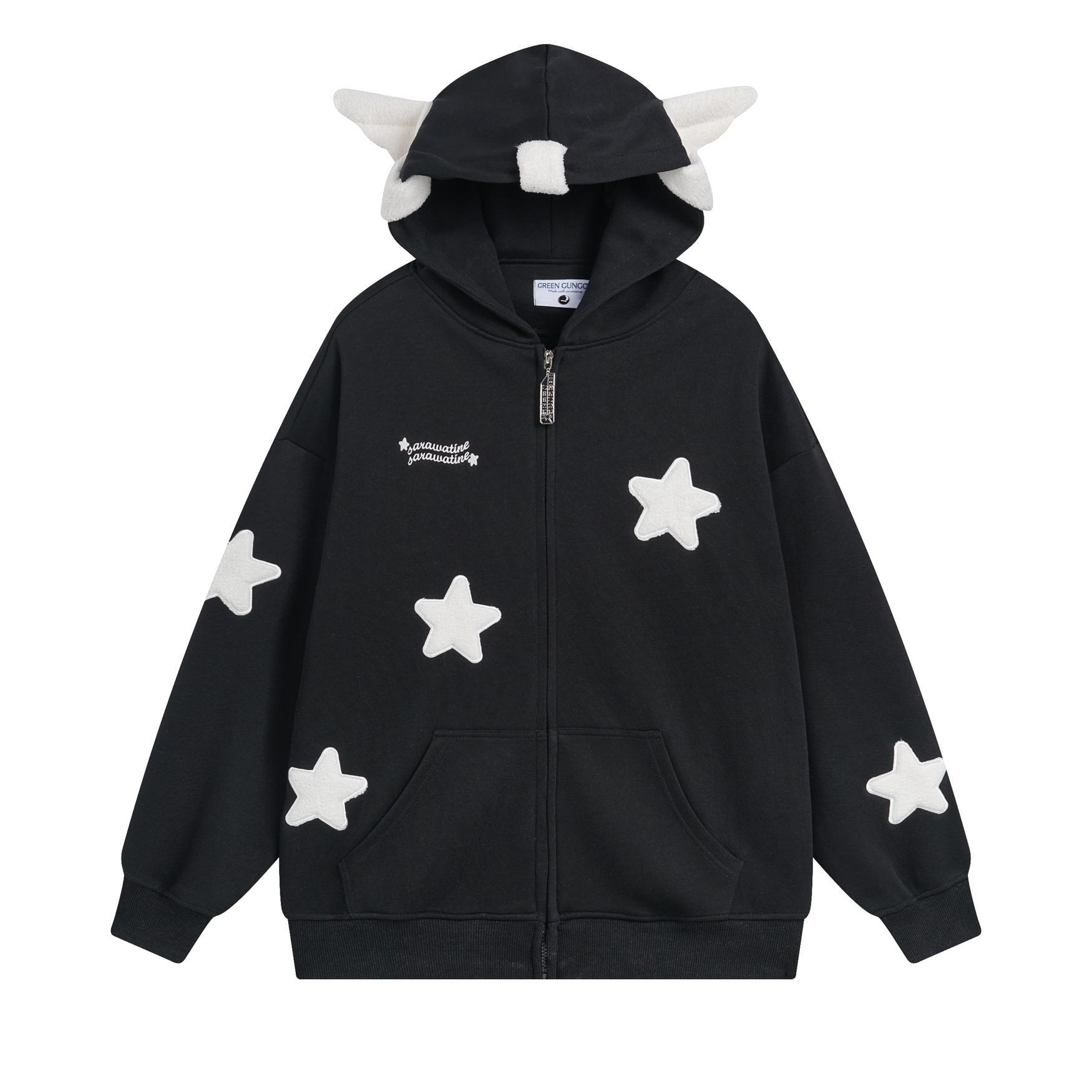 달콤한 쿨 스타일 아메리칸 스타일 귀여운 스타 날개 후드 스웨터 남성과 여성의 국가 패션 브랜드 스트리트 느슨한 게으른 카디건 재킷