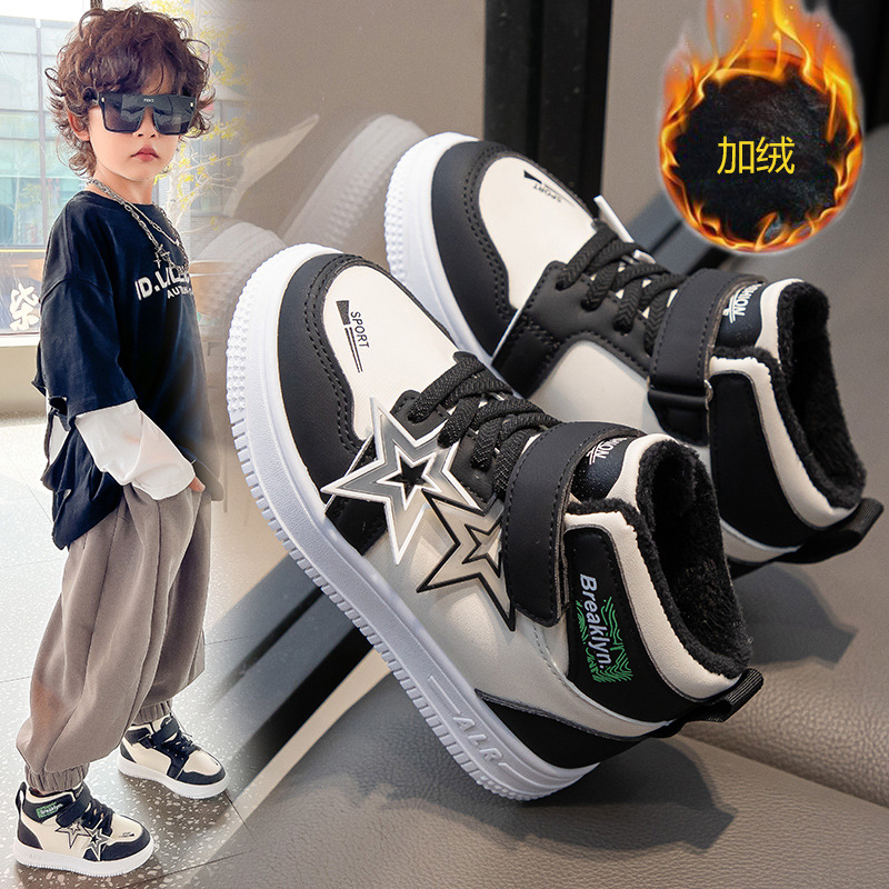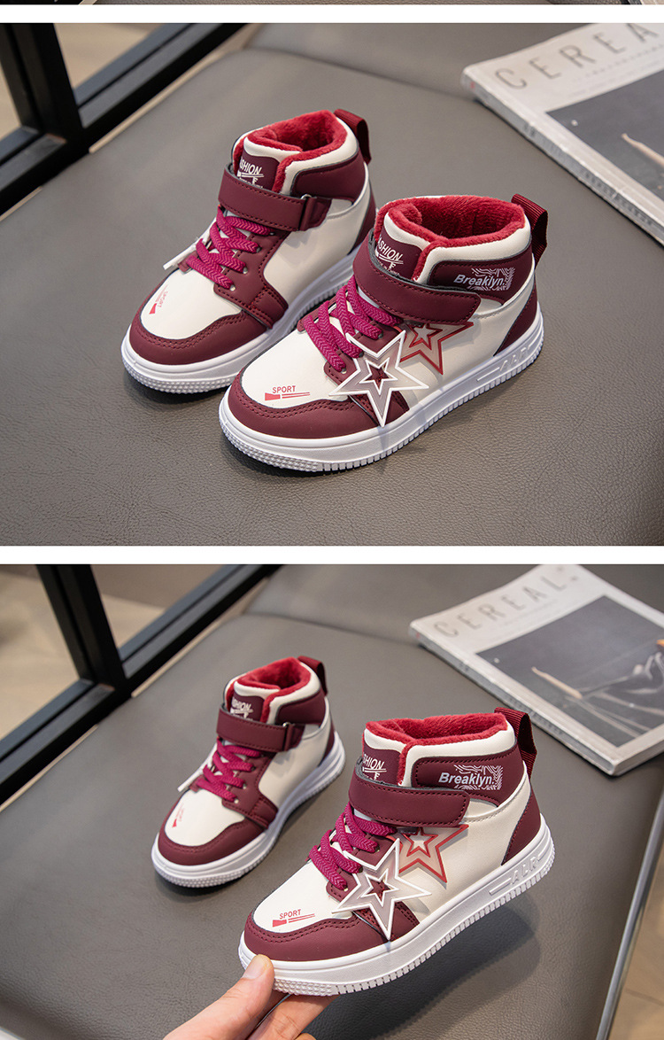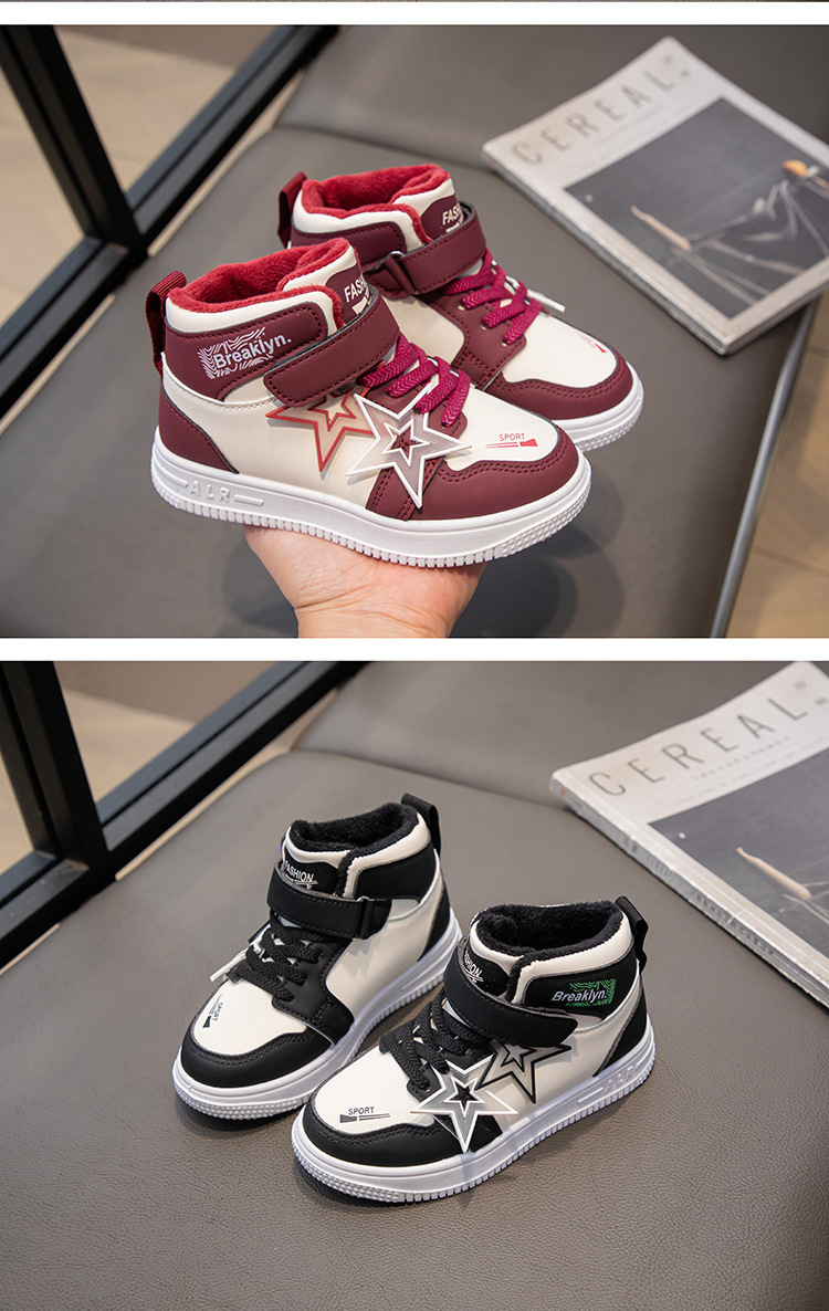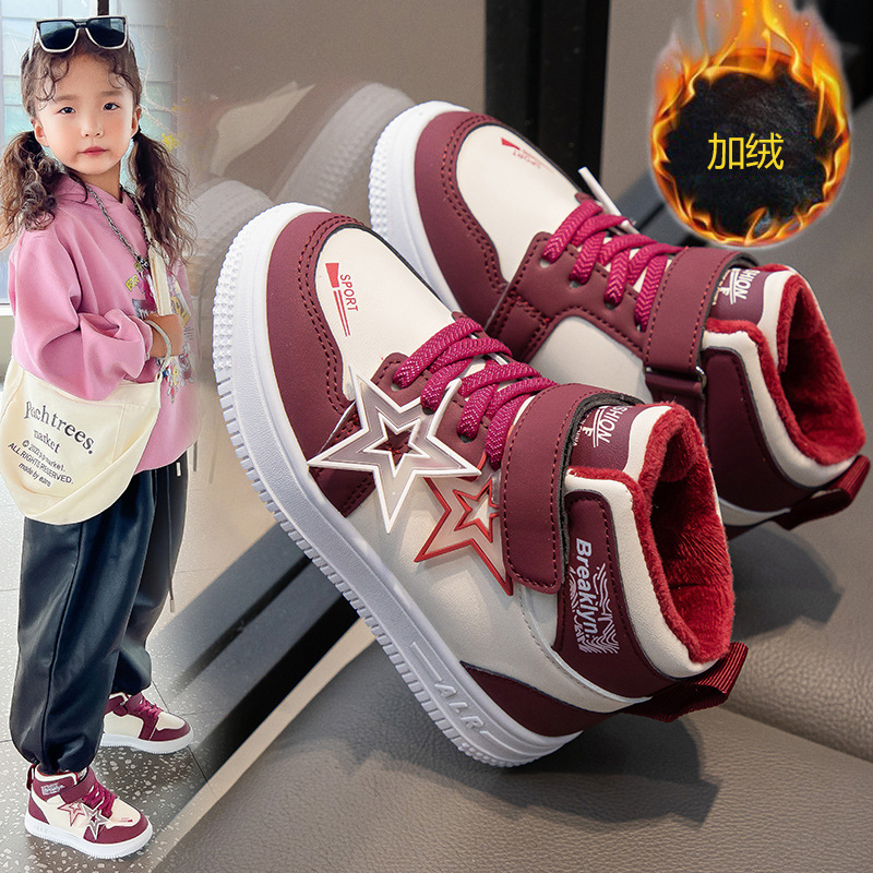 가을 겨울 신상 여아용 플러스벨벳 편안한 하이탑 운동화 남아용 이중 면화 운동화 어린이용 내구성 미끄럼 방지 보온
