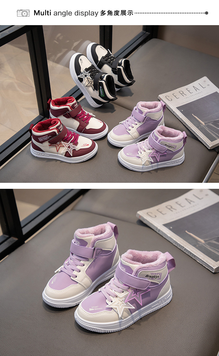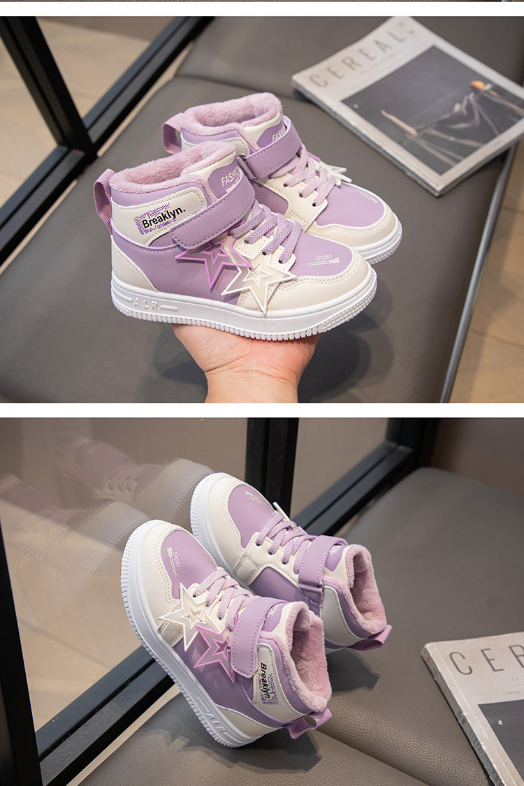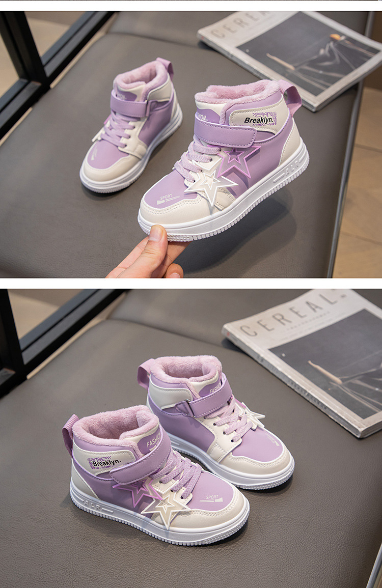 가을 겨울 신상 여아용 플러스벨벳 편안한 하이탑 운동화 남아용 이중 면화 운동화 어린이용 내구성 미끄럼 방지 보온스토어 가기