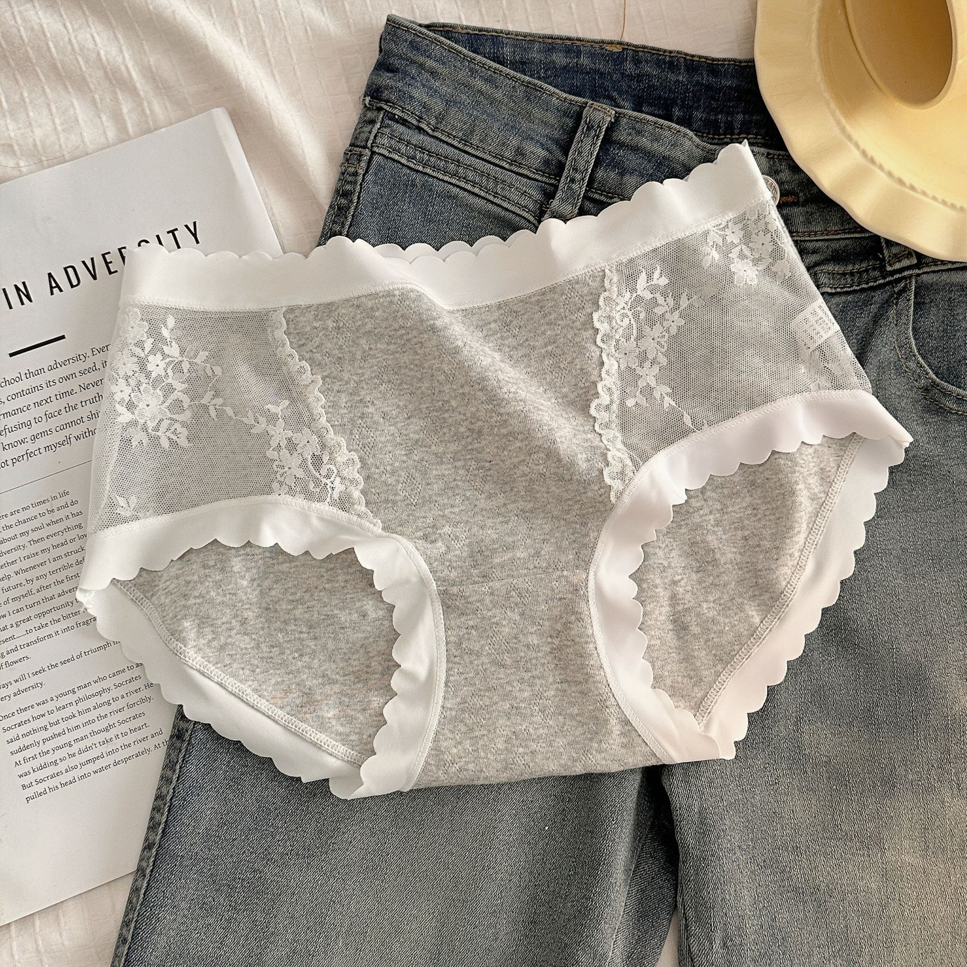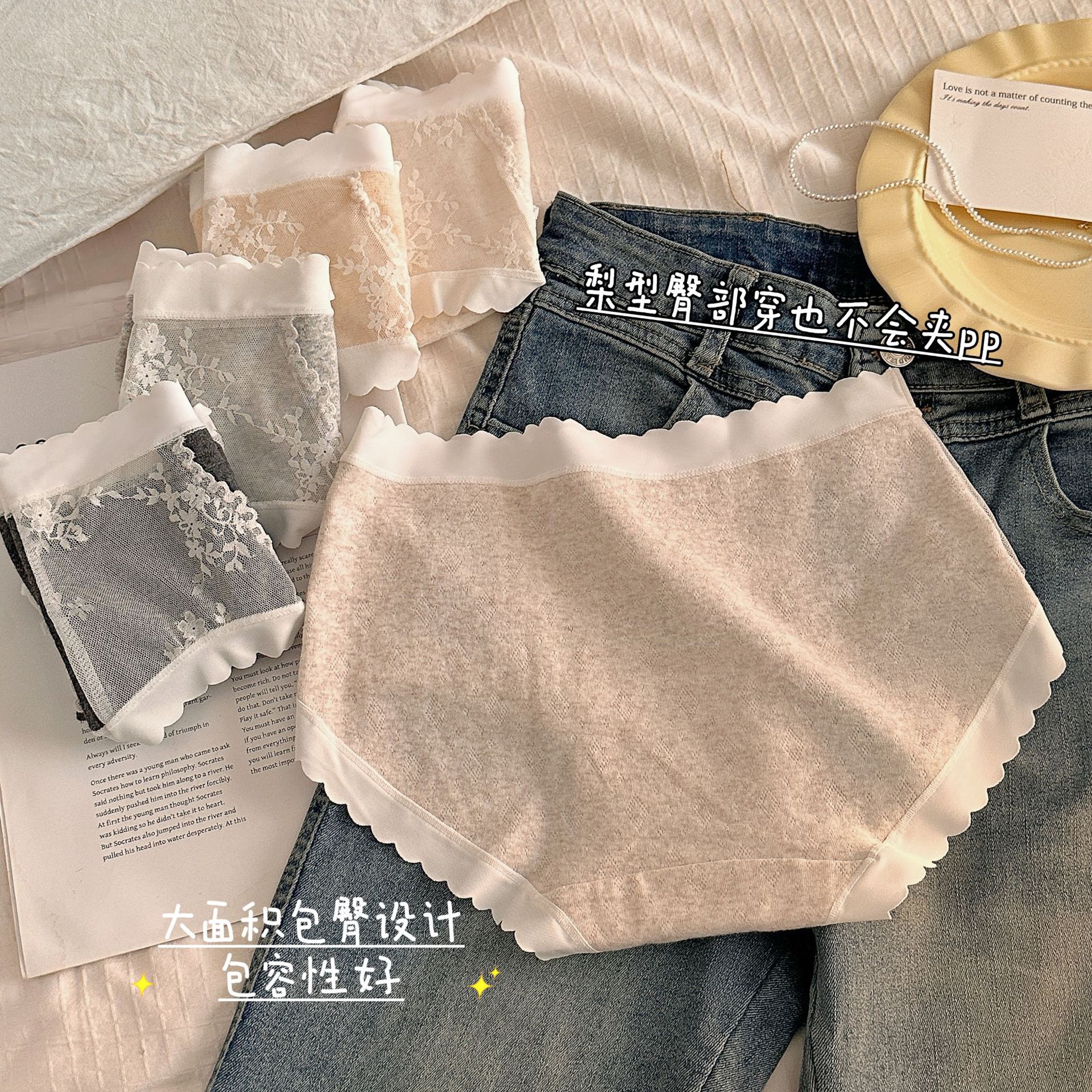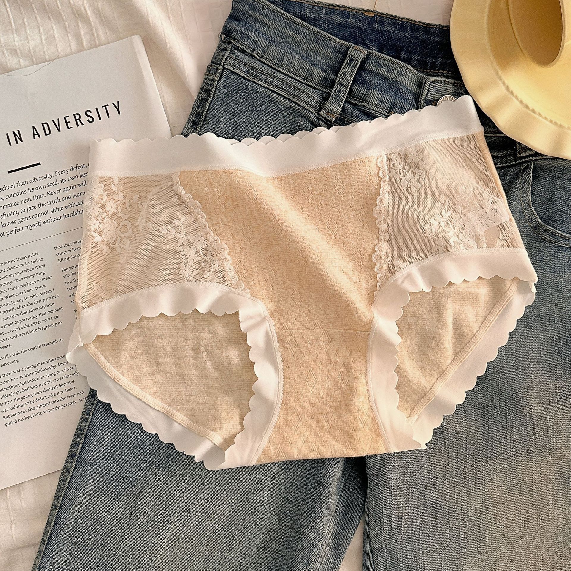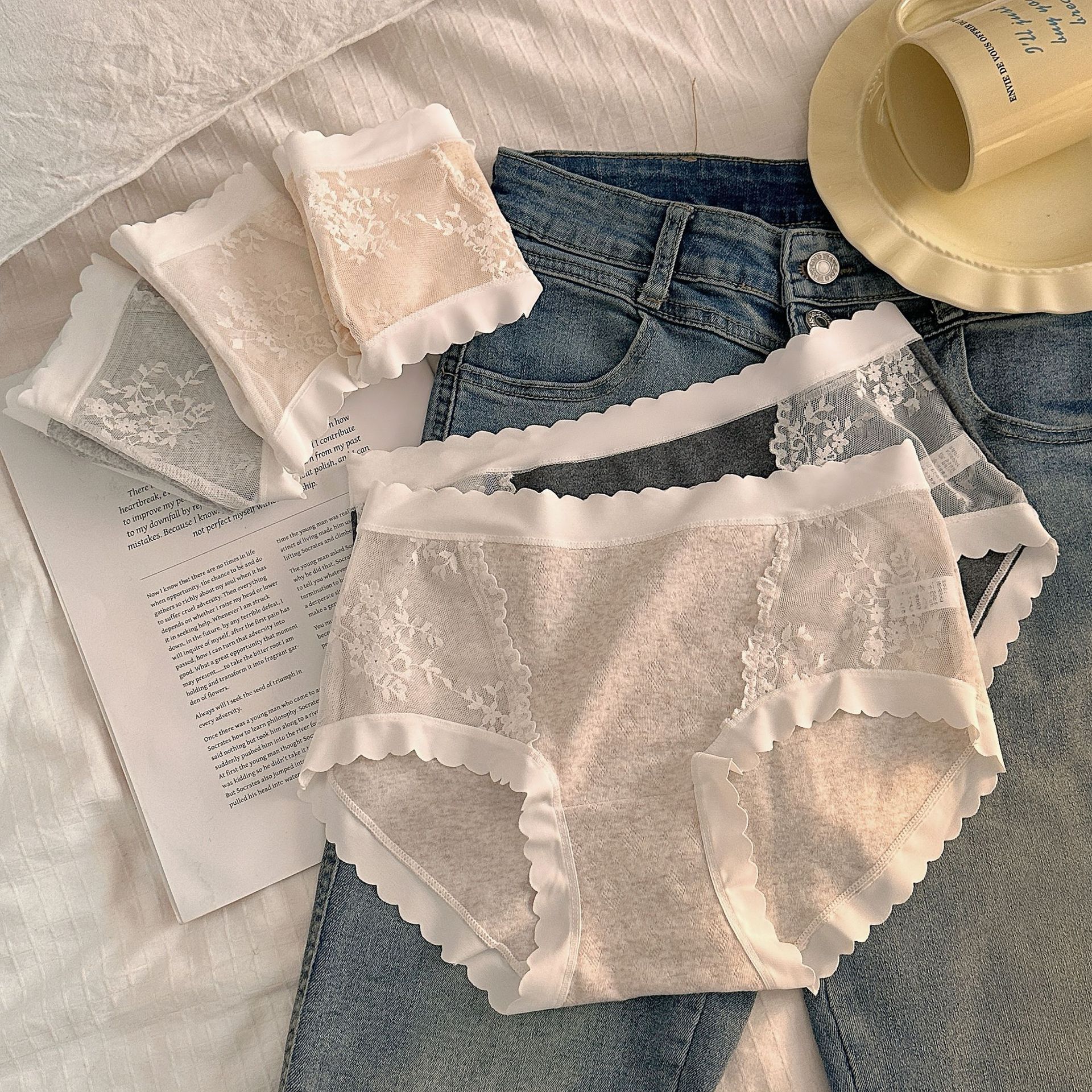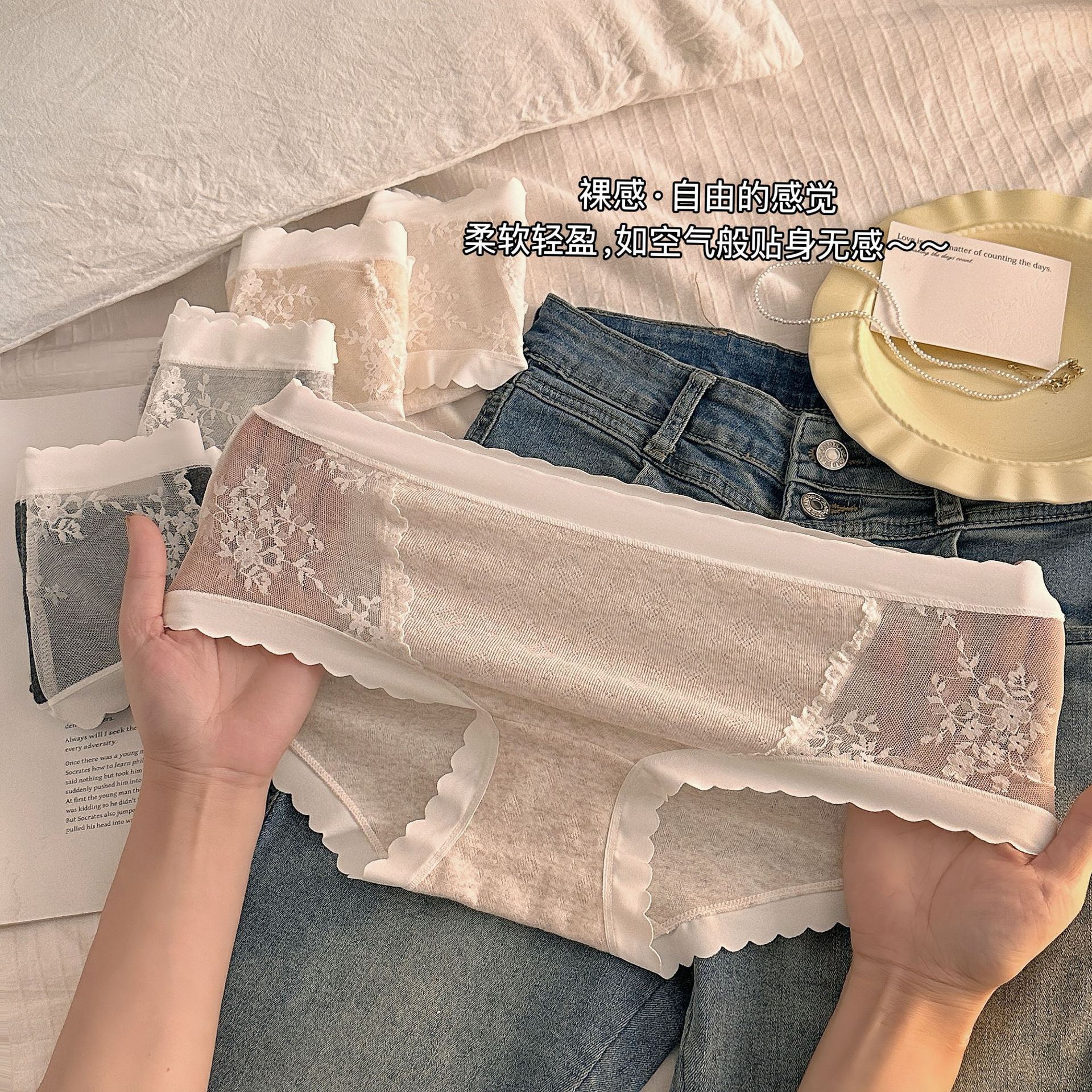 "Twilight Camellia" 소프트 왁스 면 속옷 소녀의 중공 레이스 7A 항균성 면 통기성 브리프스토어 가기