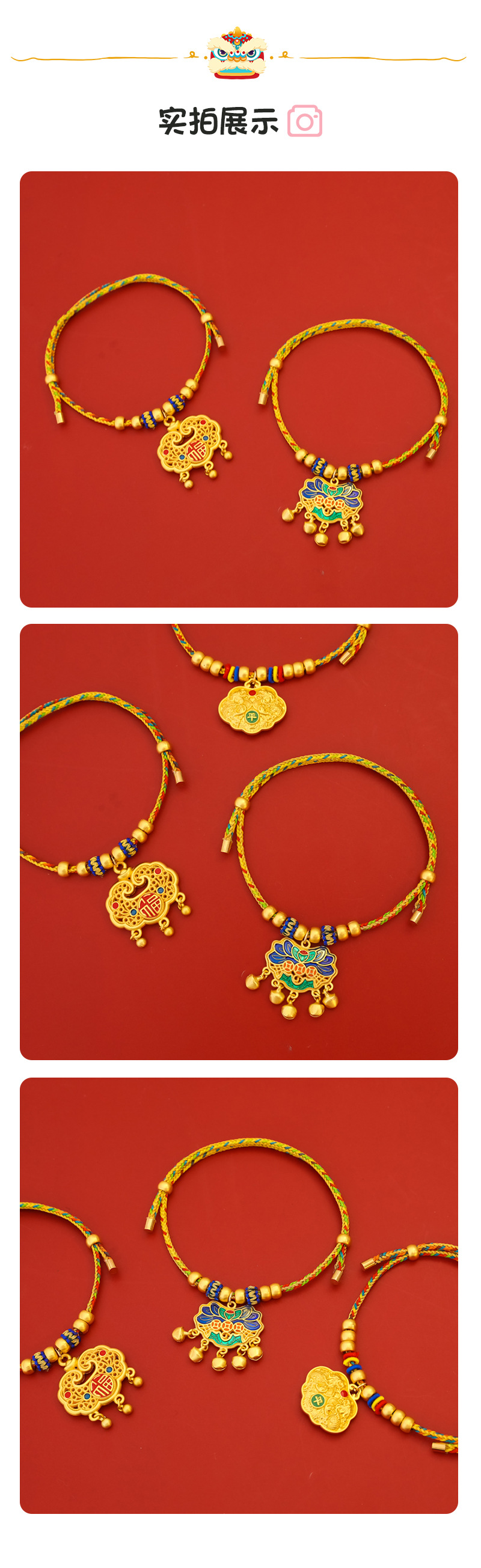 컬러 보존 장수 잠금 중국 스타일 애완 동물 새해 로프 칼라 봄 축제 고양이 개 골드 목걸이 장식 침묵스토어 가기
