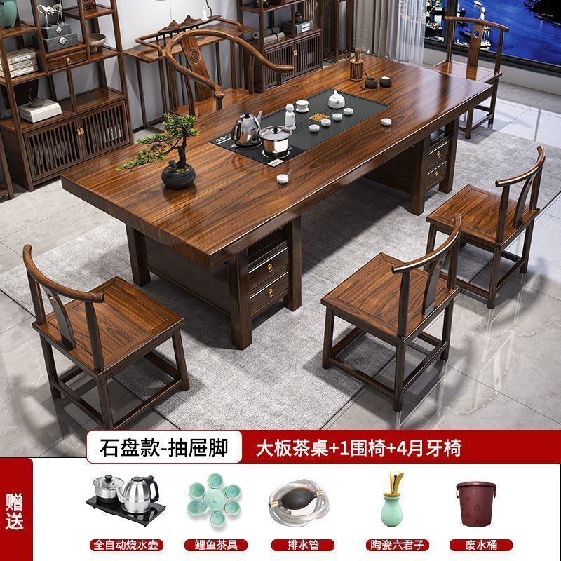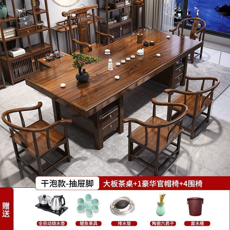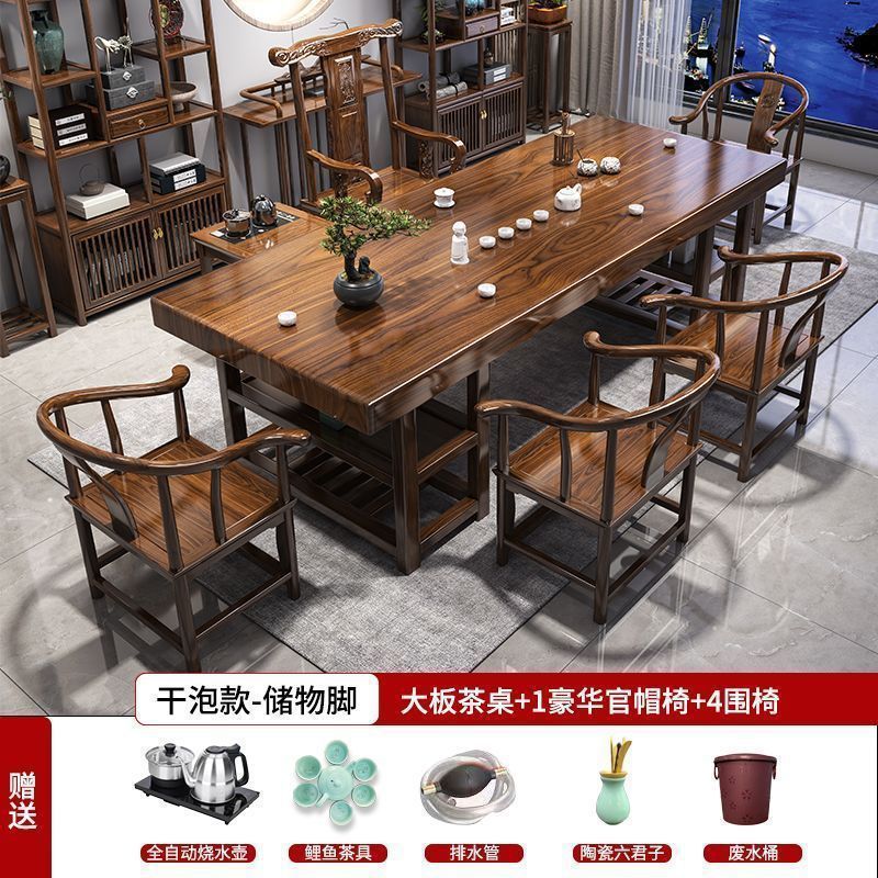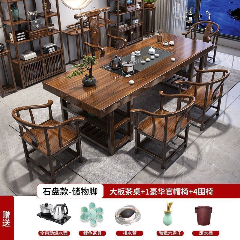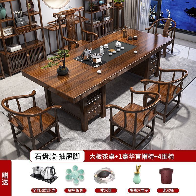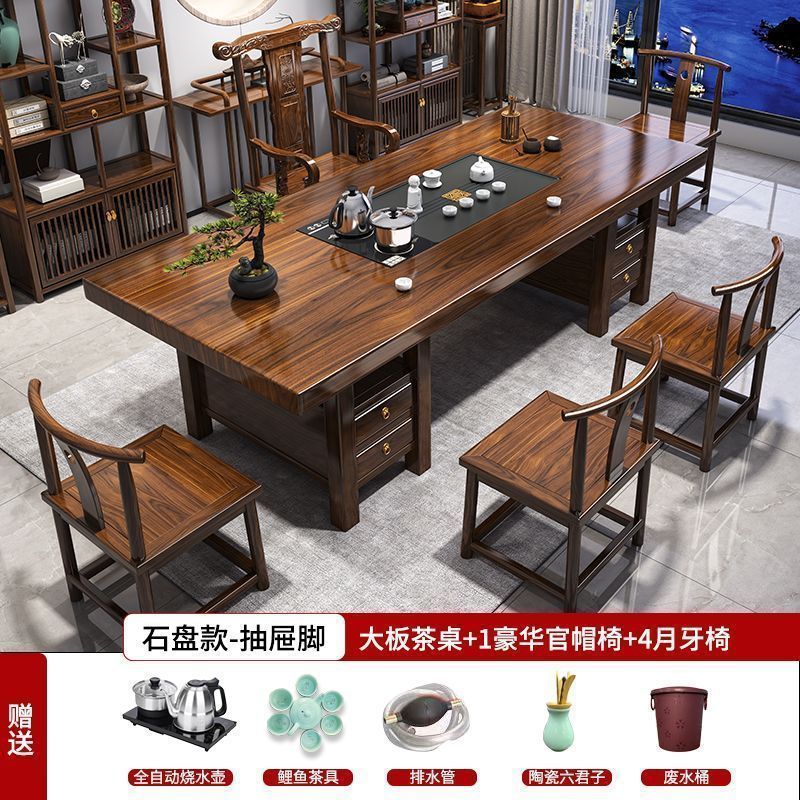 하이 엔드 솔리드 우드 대형 보드 티 테이블과 의자 조합 한 세트의 새로운 중국 티 테이블 차 세트 사무실 홈 티 테이블스토어 가기