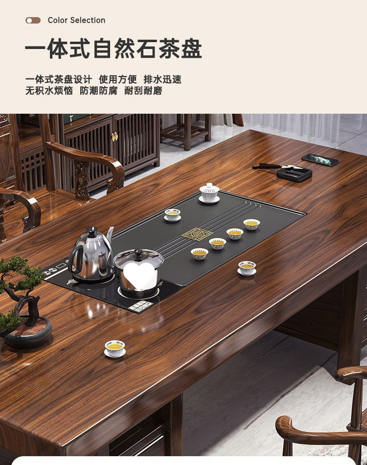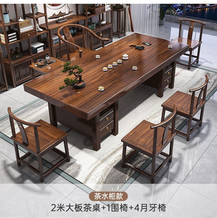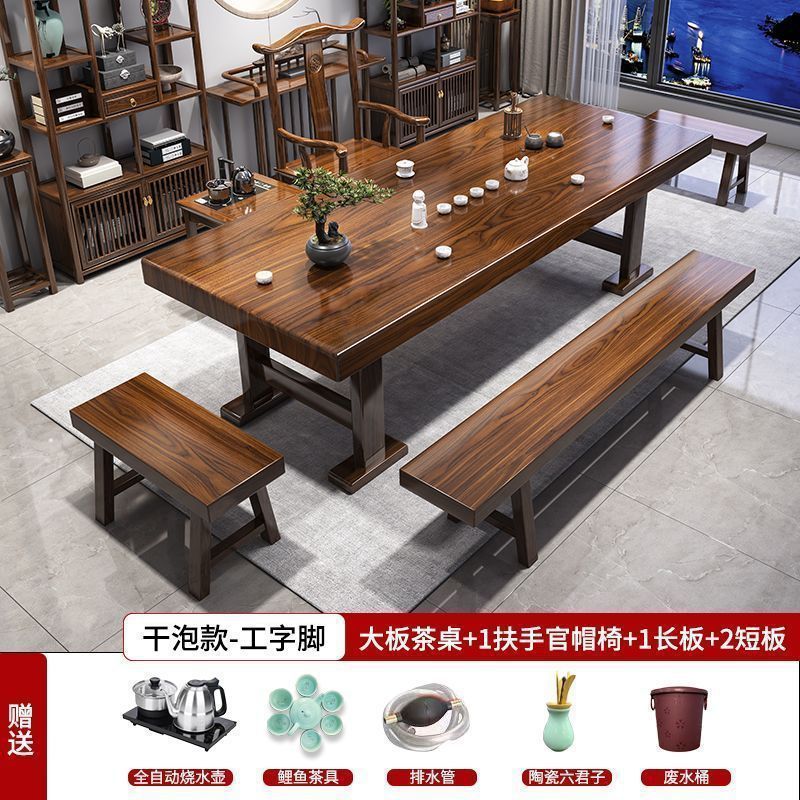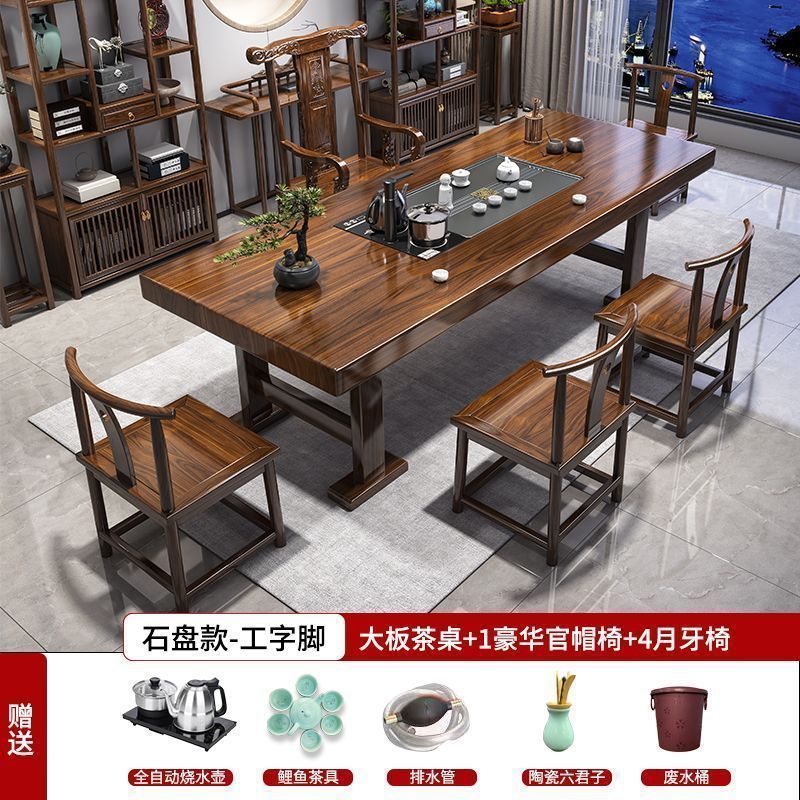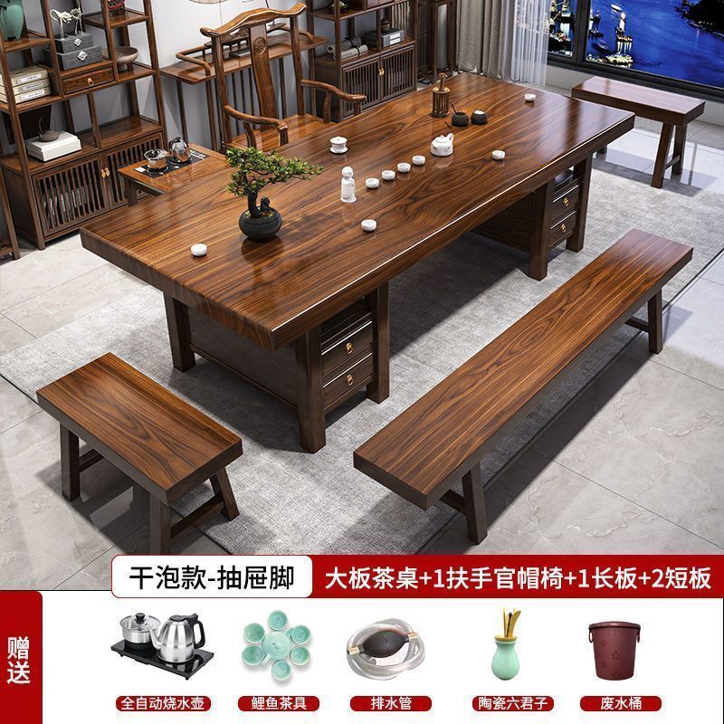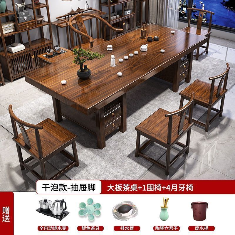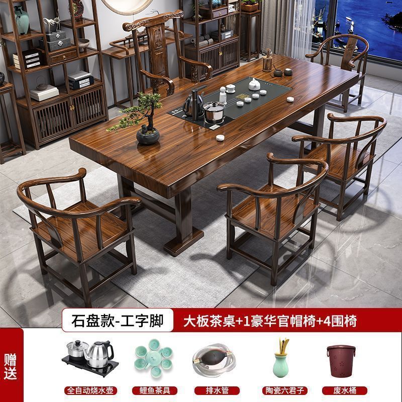 하이 엔드 솔리드 우드 대형 보드 티 테이블과 의자 조합 한 세트의 새로운 중국 티 테이블 차 세트 사무실 홈 티 테이블스토어 가기