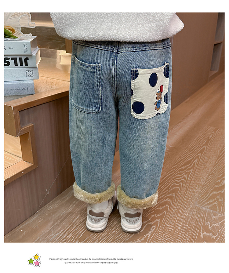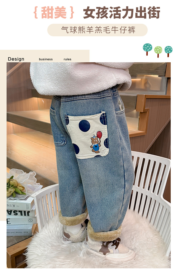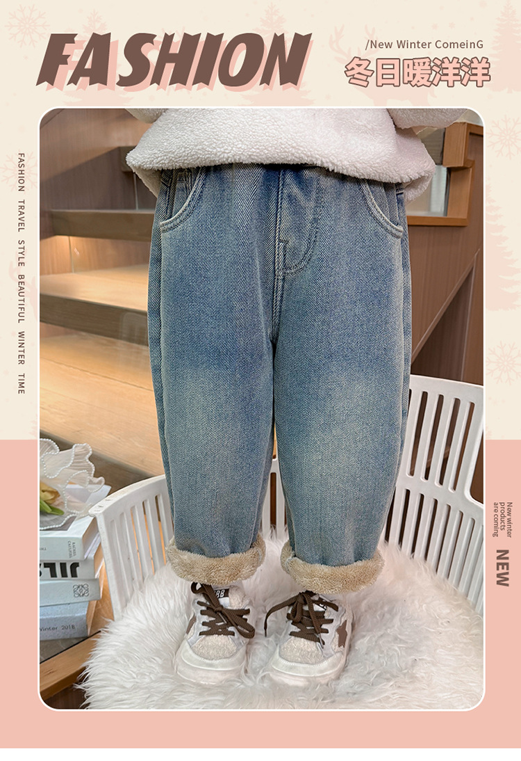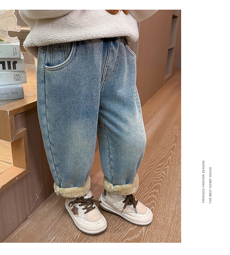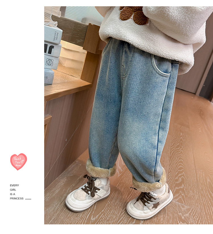 소녀 청바지 겨울 기모 2024 새로운 원피스 벨벳 램 벨벳 여성용 겨울 어린이 바지스토어 가기