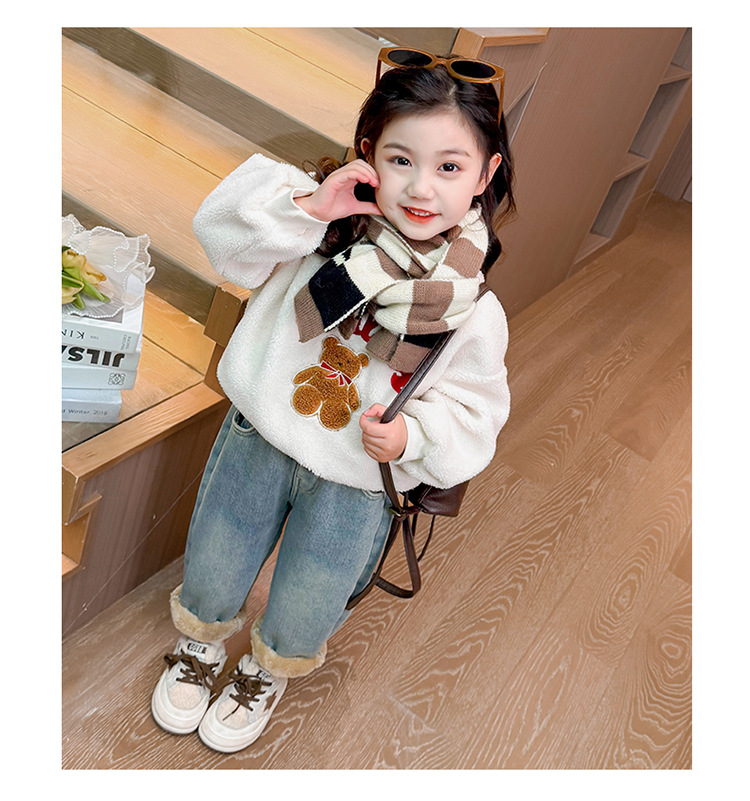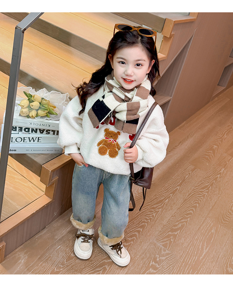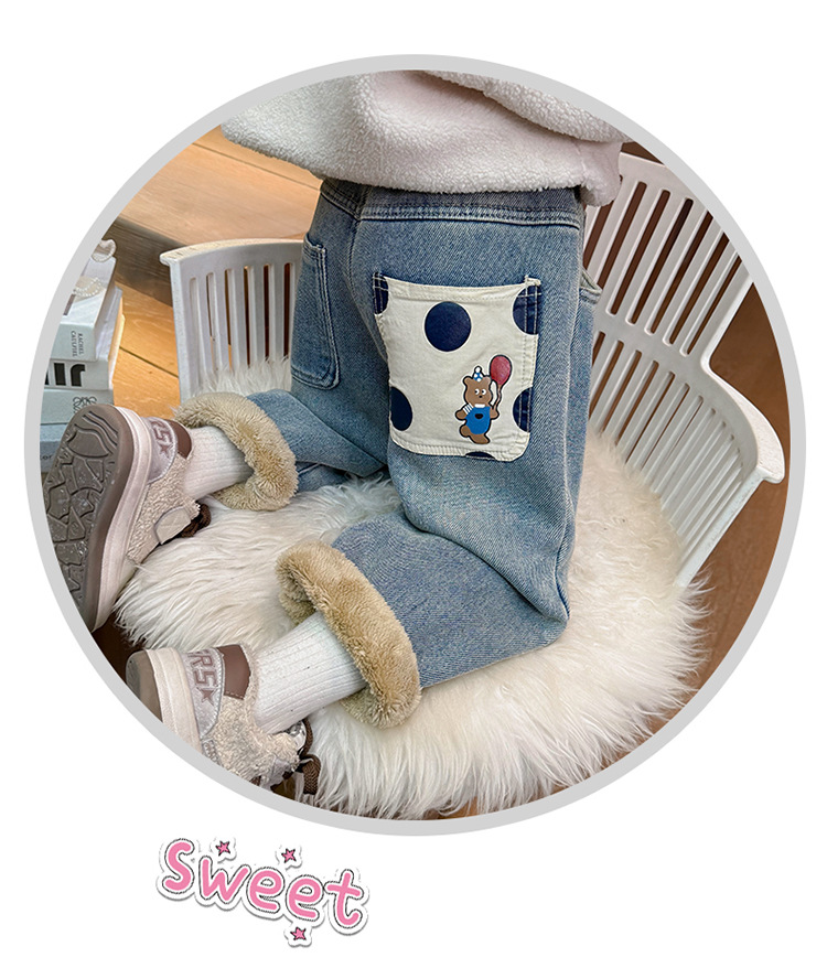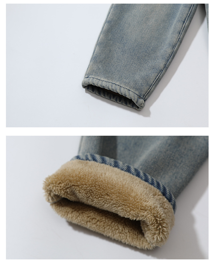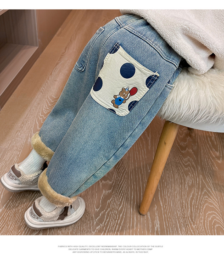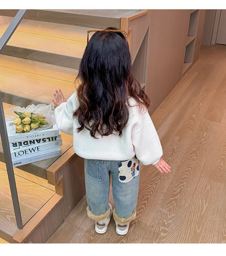 소녀 청바지 겨울 기모 2024 새로운 원피스 벨벳 램 벨벳 여성용 겨울 어린이 바지스토어 가기