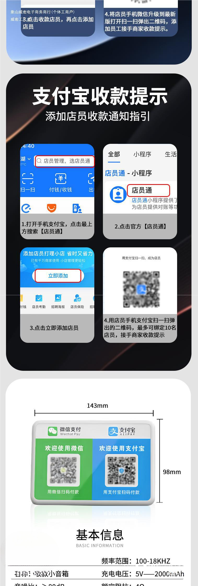 머니 컬렉션 오디오 Alipay 2 차원 코드 수집 오디오 프롬프트 음성 방송사 블루투스 스피커 847