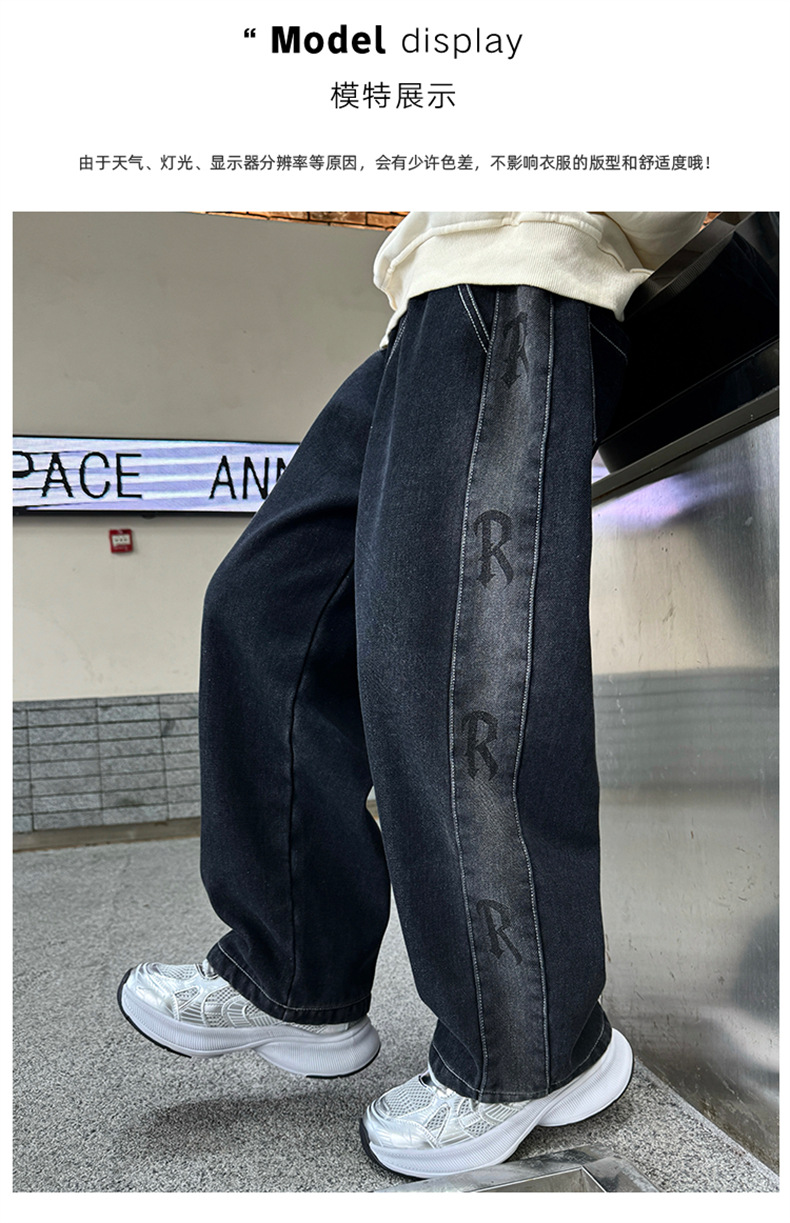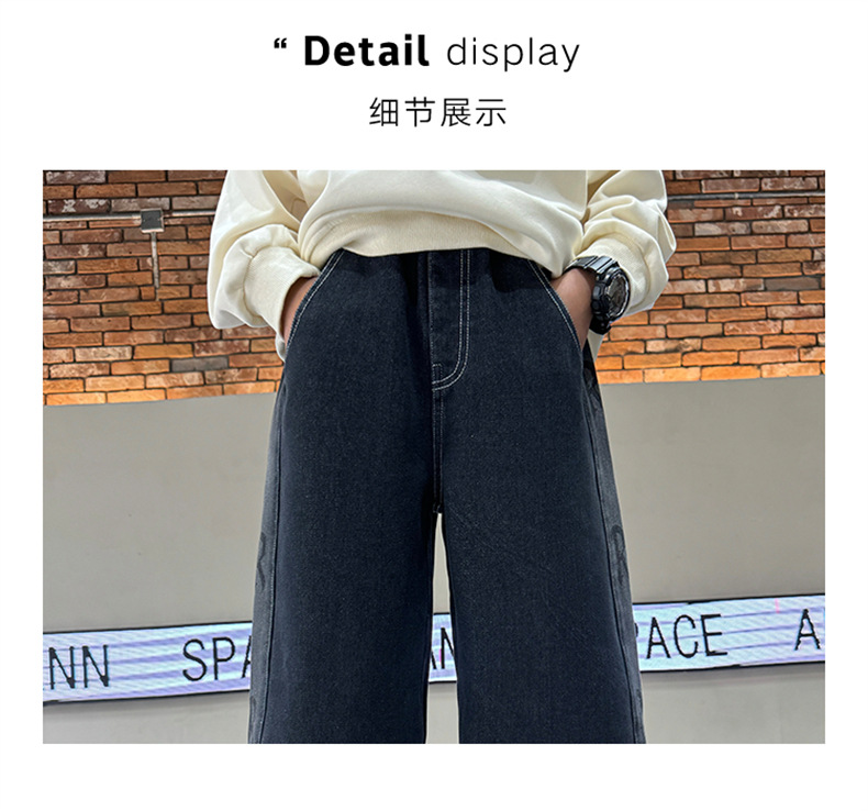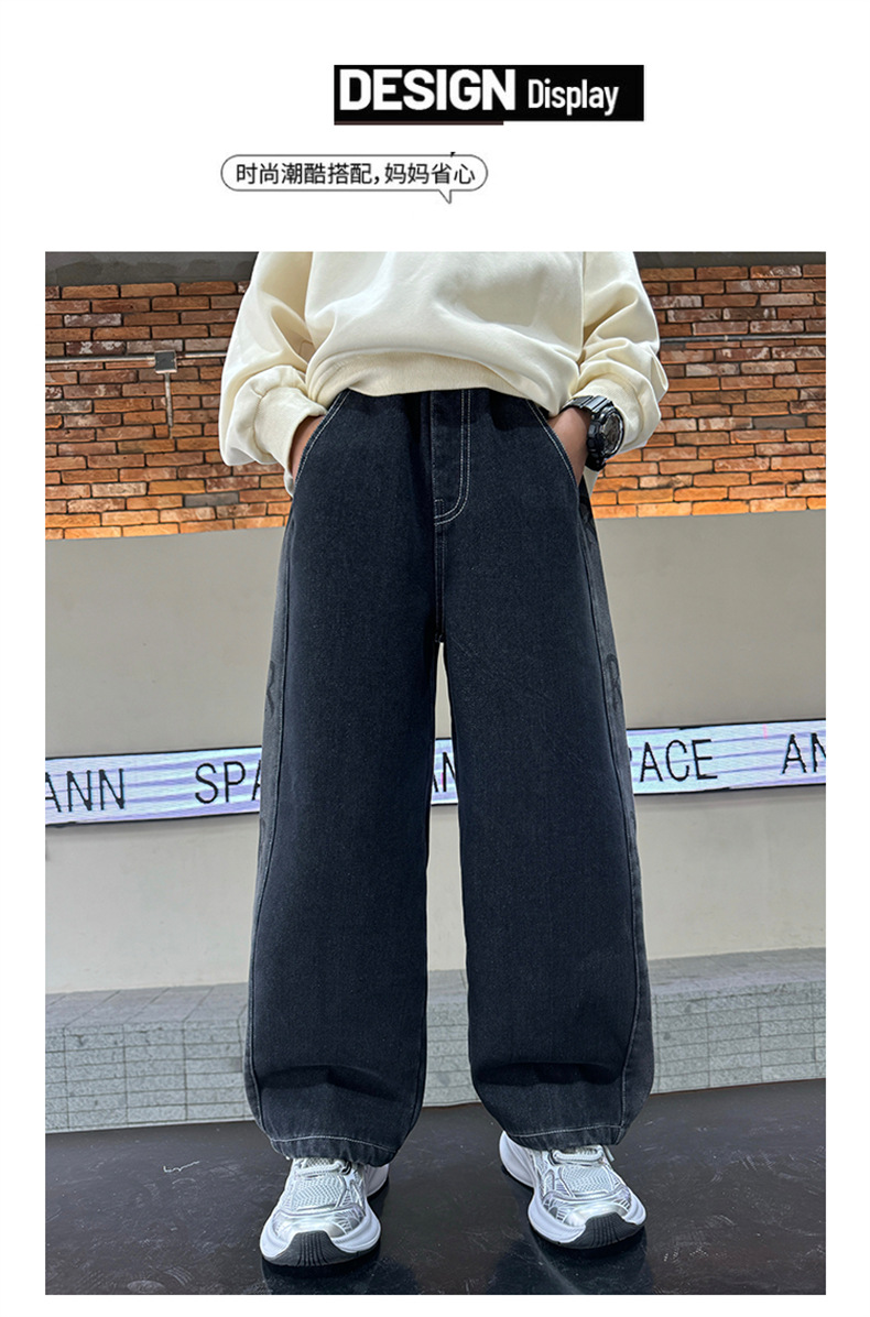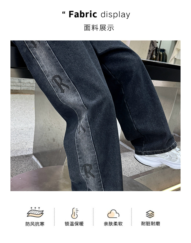 소년의 겨울 기모 청바지 2024 새로운 스타일 중대형 어린이 겨울 바지 어린이 두꺼운 소년 캐주얼 바지스토어 가기