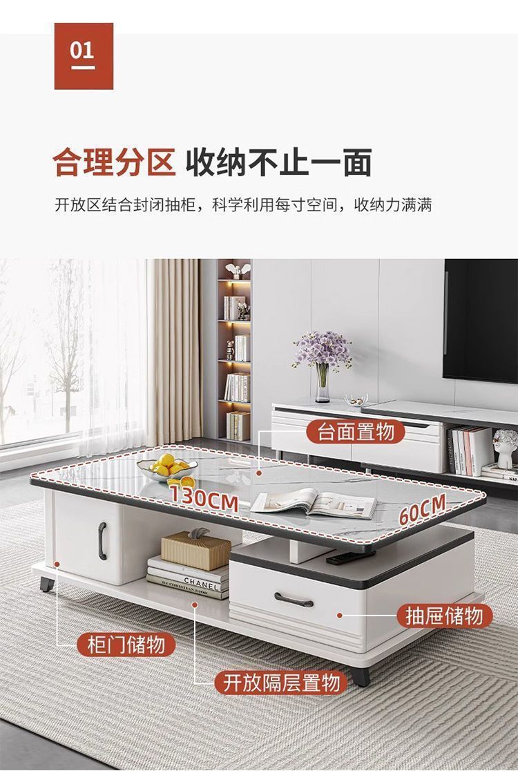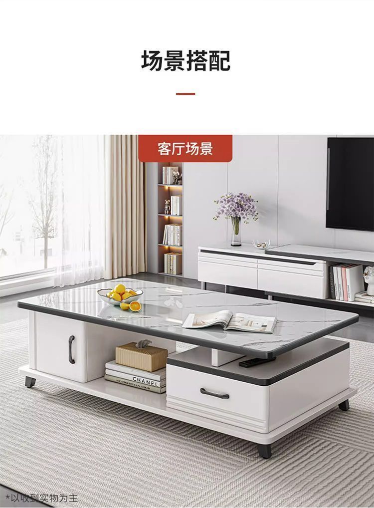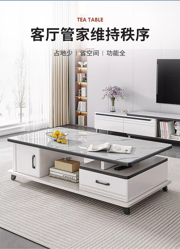 커피 테이블 홈 거실 빛 고급 현대 TV 캐비닛 개폐식 조합 작은 아파트 강화 유리 티 테이블