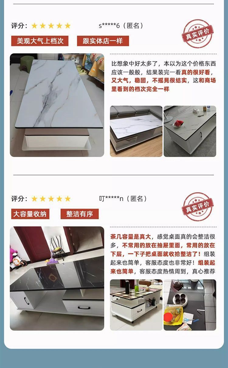 커피 테이블 홈 거실 빛 고급 현대 TV 캐비닛 개폐식 조합 작은 아파트 강화 유리 티 테이블스토어 가기