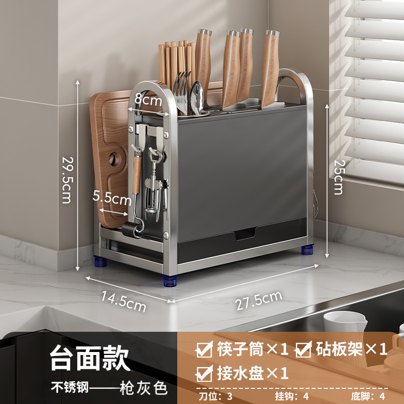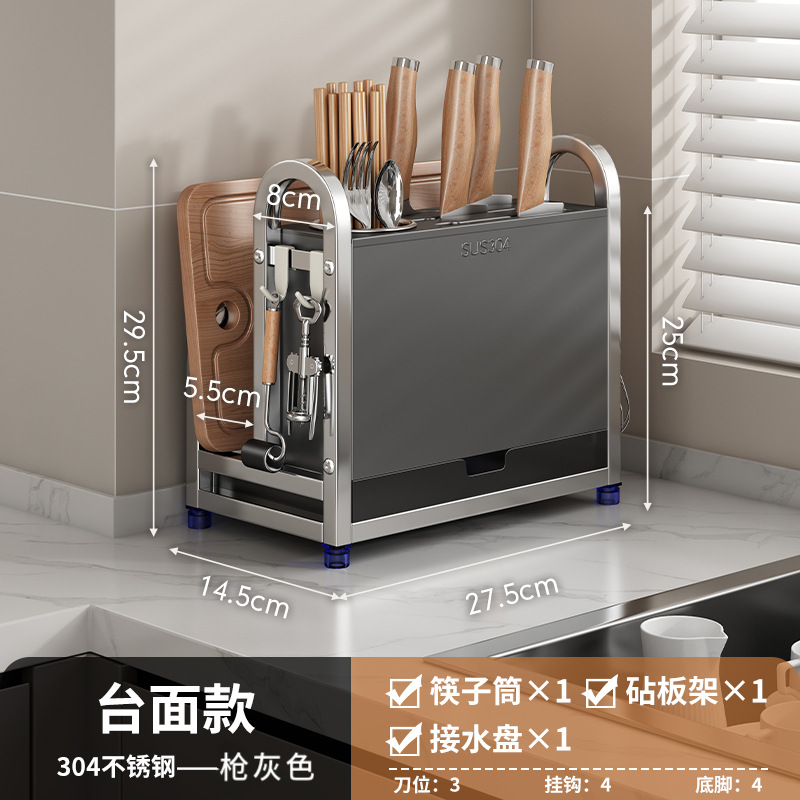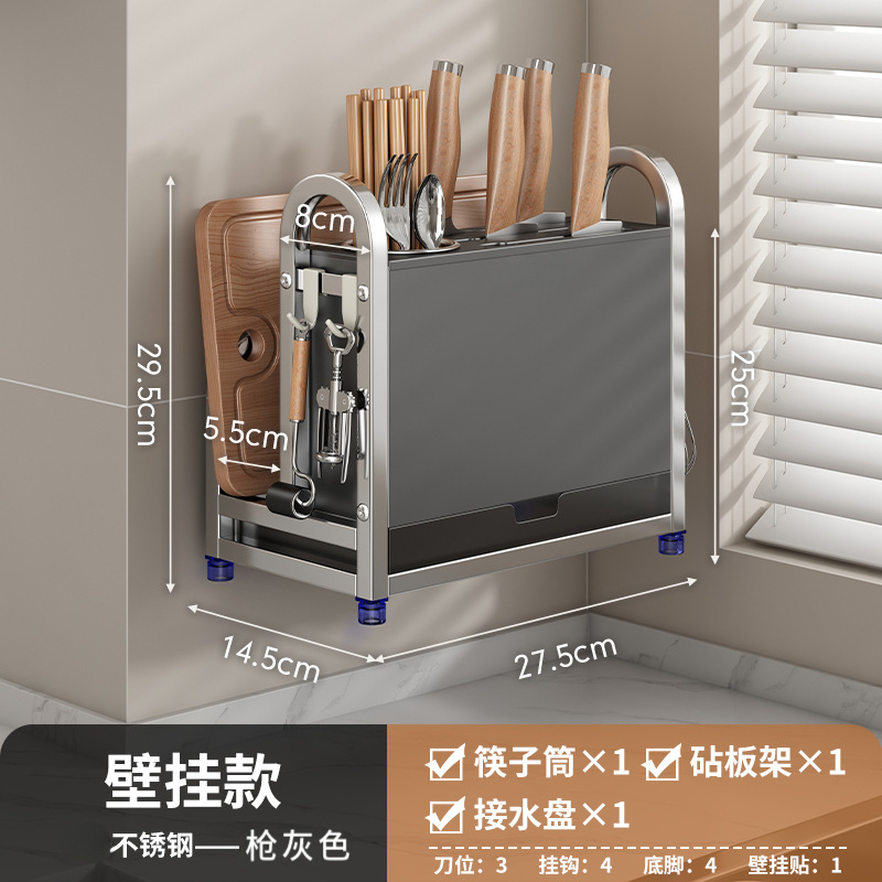 • 304 스테인레스 스틸 업그레이드 수조 모델 건 그레이 컬러 매칭 칼 홀더 + 후크 4개