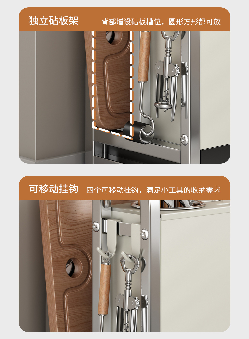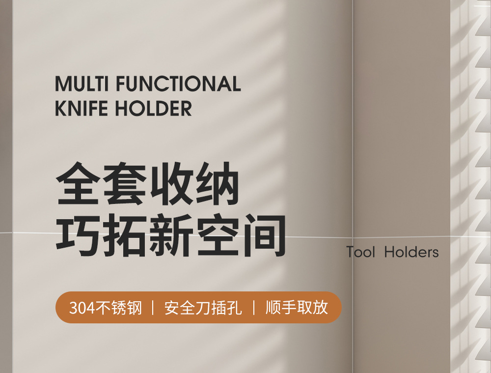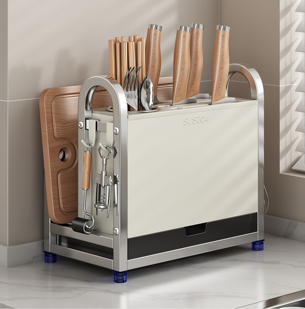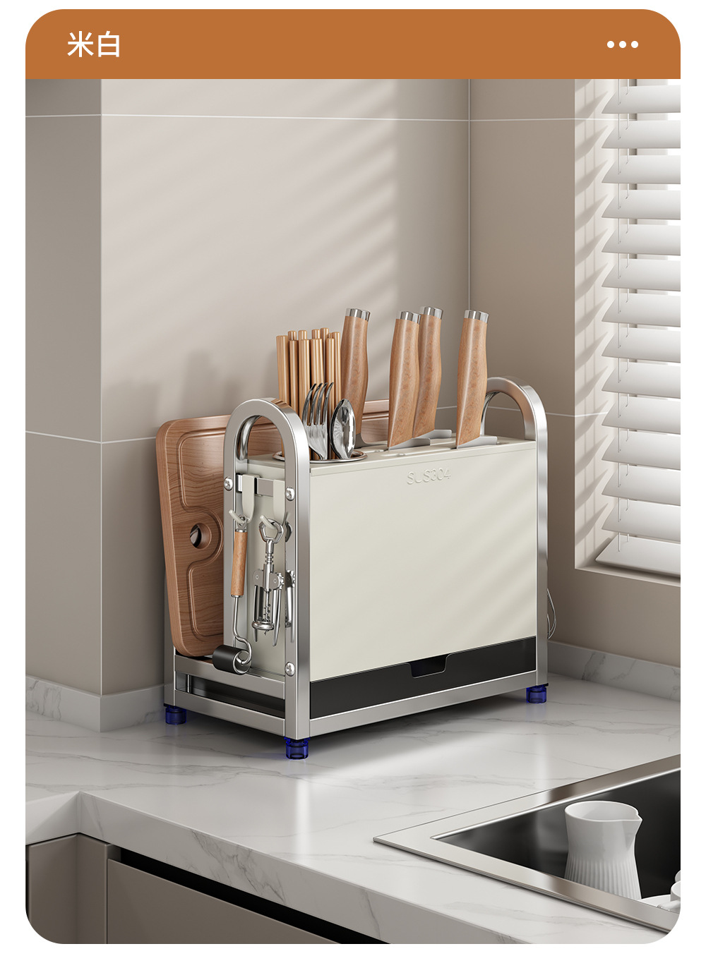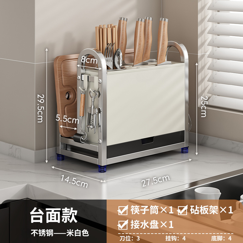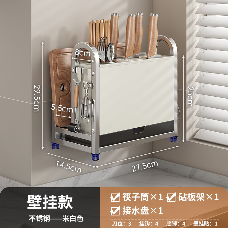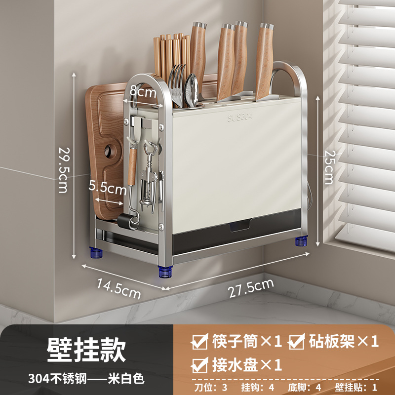 • 304 스테인레스 스틸 업그레이드된 조리대 스타일 미색 컬러 매칭 칼 홀더 + 후크 4개