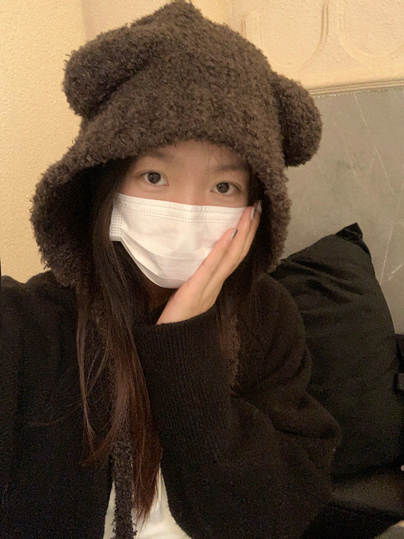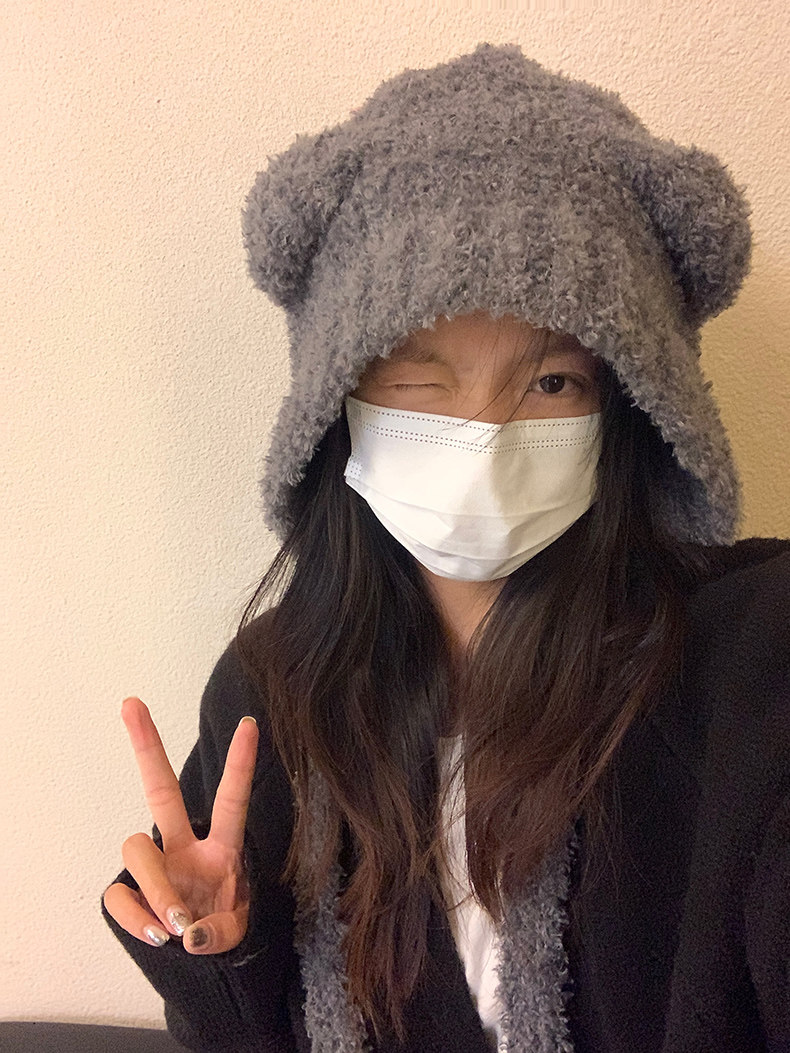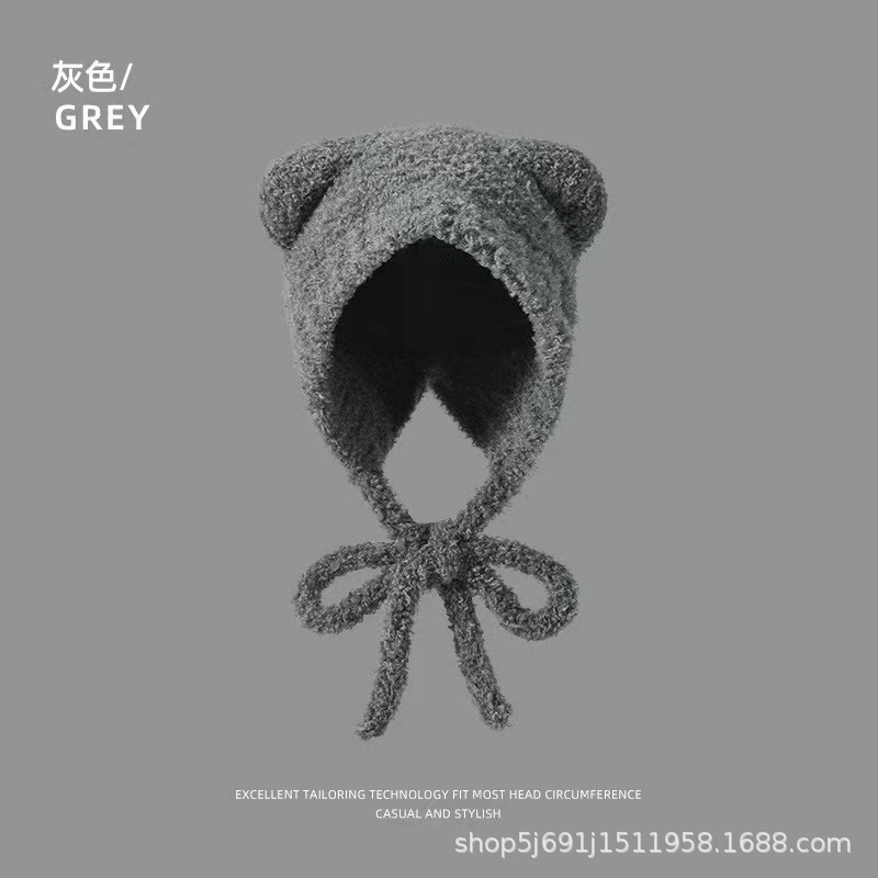 모자 여성의 겨울 2024 새로운 일본과 한국의 가을 겨울 귀여운 테더 베어 올매치 따뜻한 울 모자 귀 보호 니트 모자스토어 가기