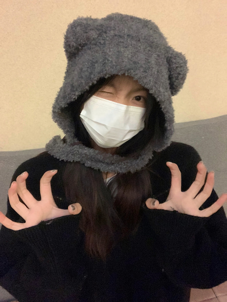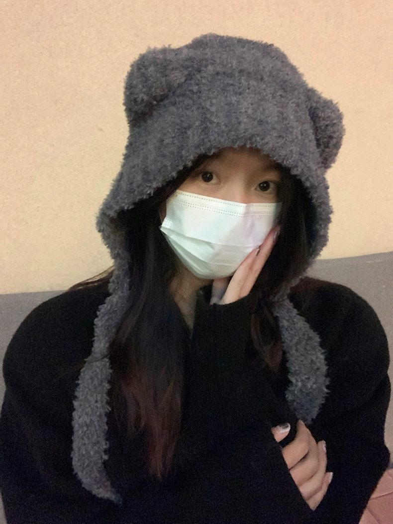 모자 여성의 겨울 2024 새로운 일본과 한국의 가을 겨울 귀여운 테더 베어 올매치 따뜻한 울 모자 귀 보호 니트 모자