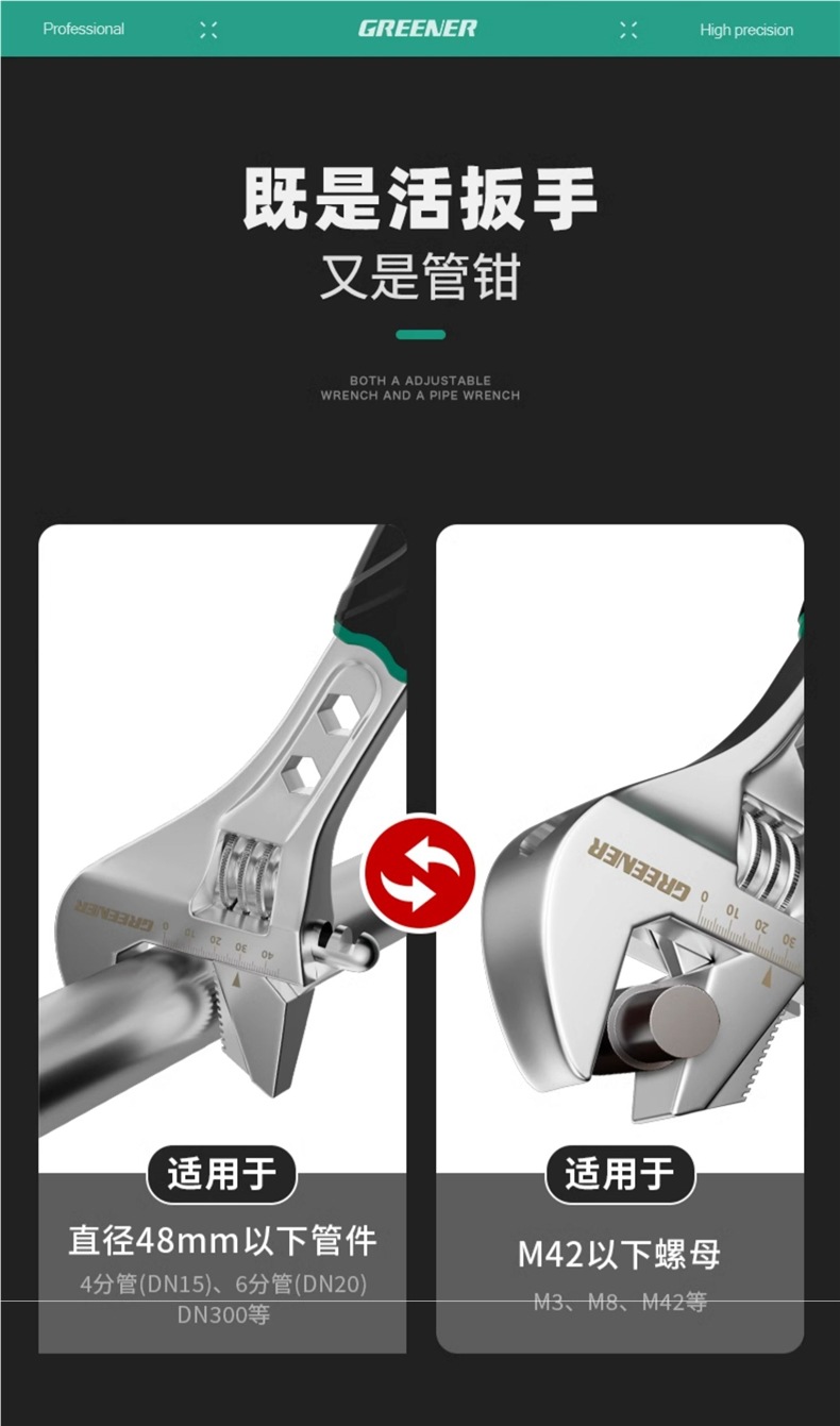 • 그린포레스트 [산업용 조절 렌치 + 파이프 렌치 겸용] 8inch 개구부 30mm