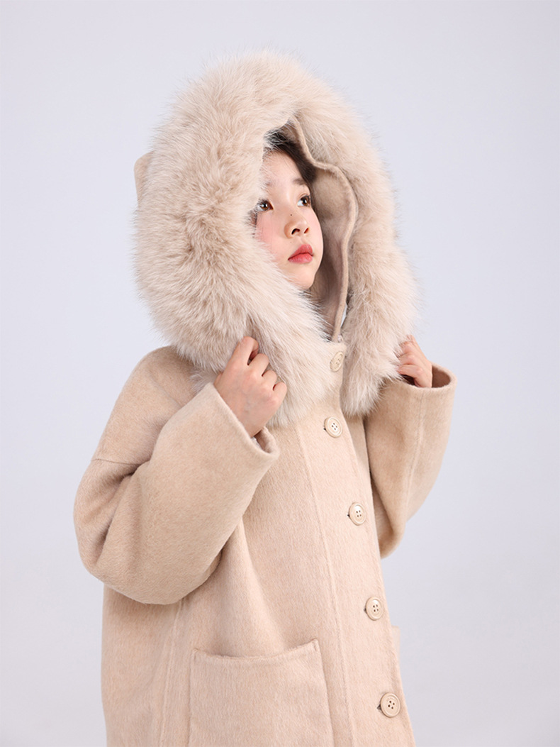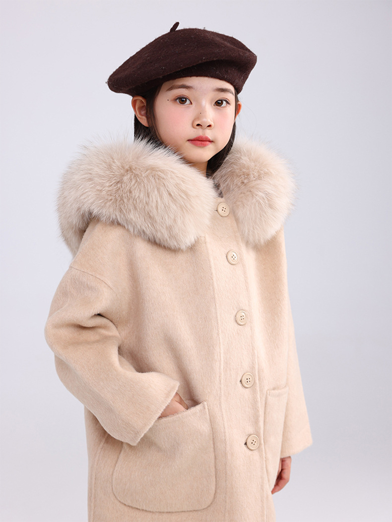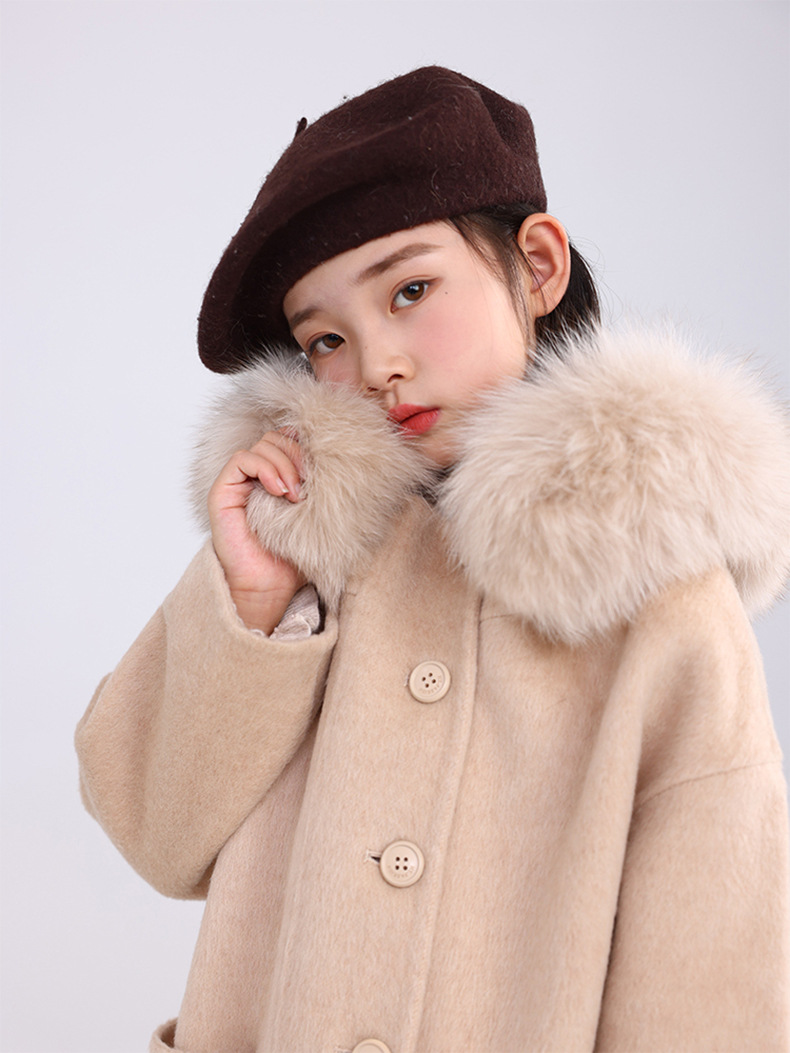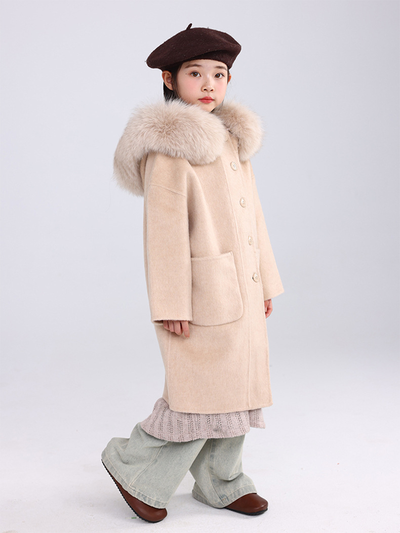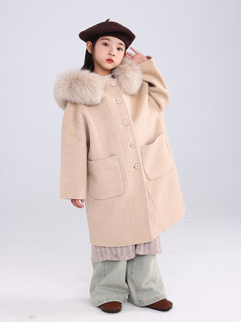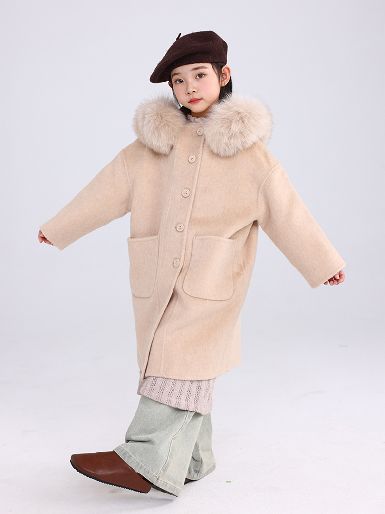 소녀 양면 양면 양모 코트 2024 새로운 서양식 가을과 겨울 중년 어린이 양모 코트 폭스 울 칼라
