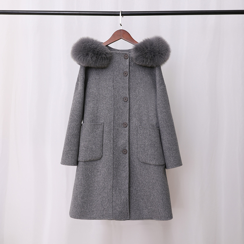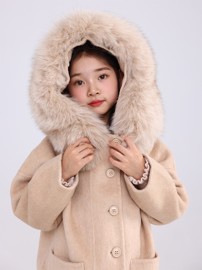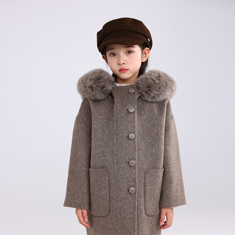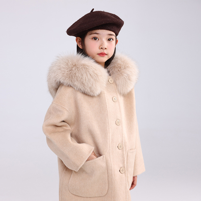 소녀 양면 양면 양모 코트 2024 새로운 서양식 가을과 겨울 중년 어린이 양모 코트 폭스 울 칼라스토어 가기