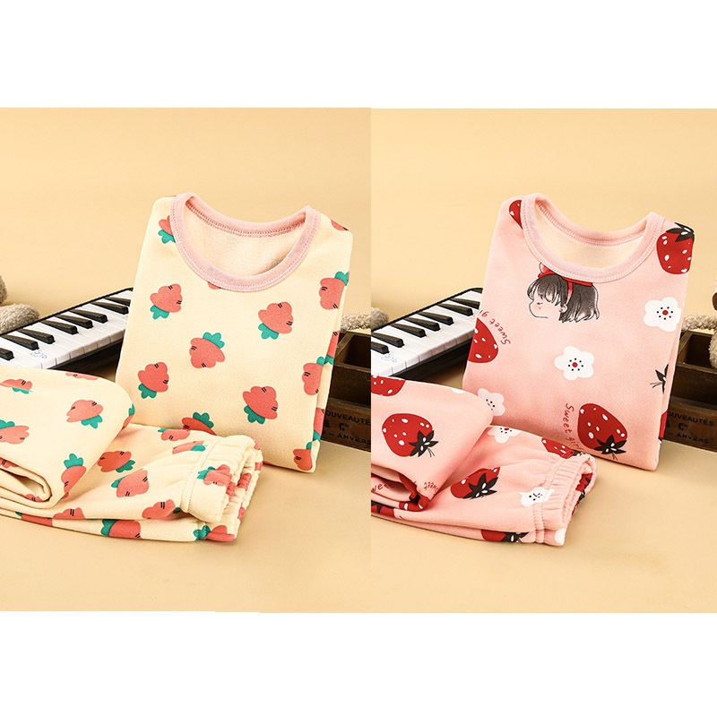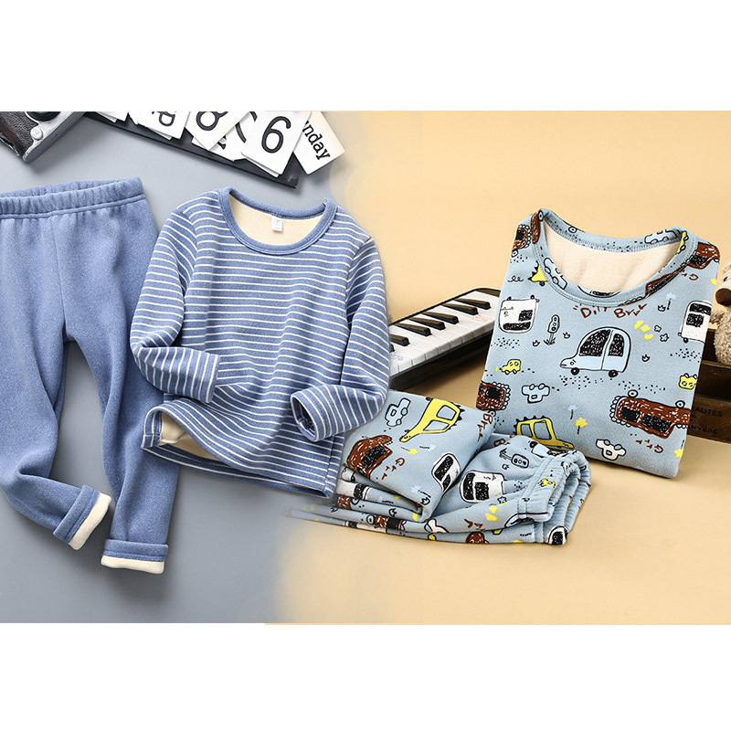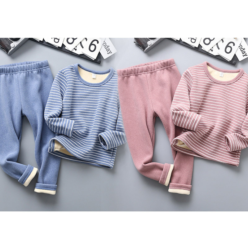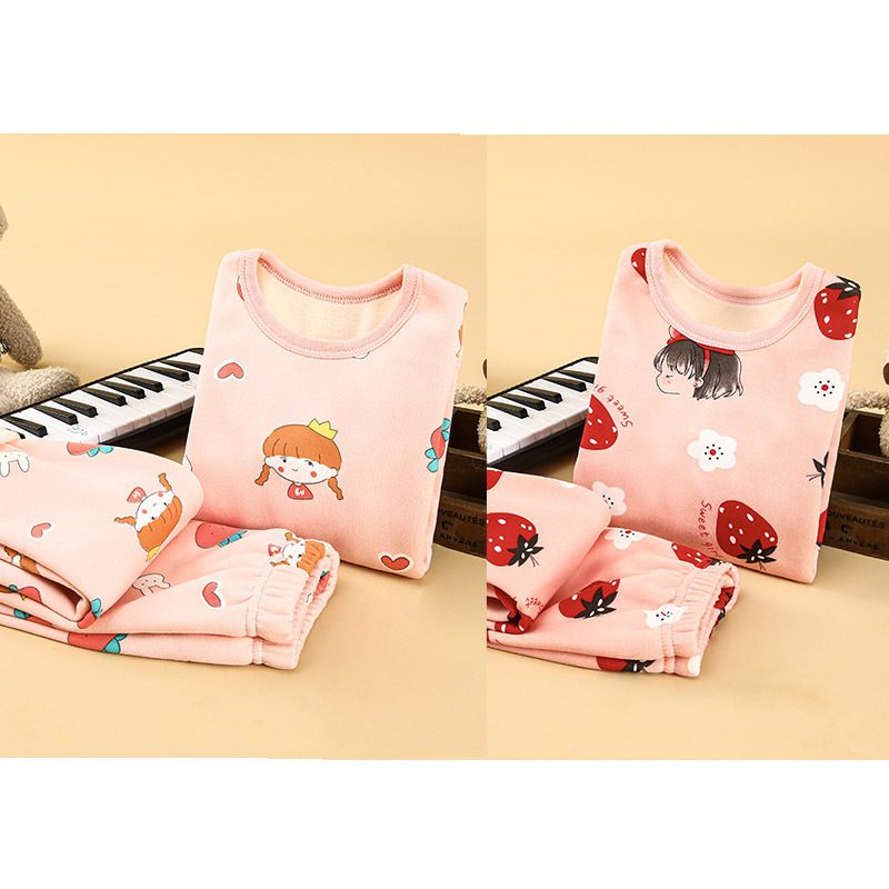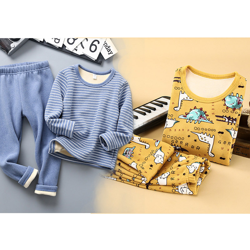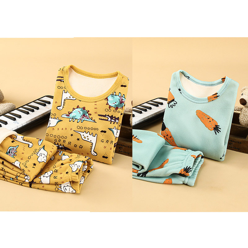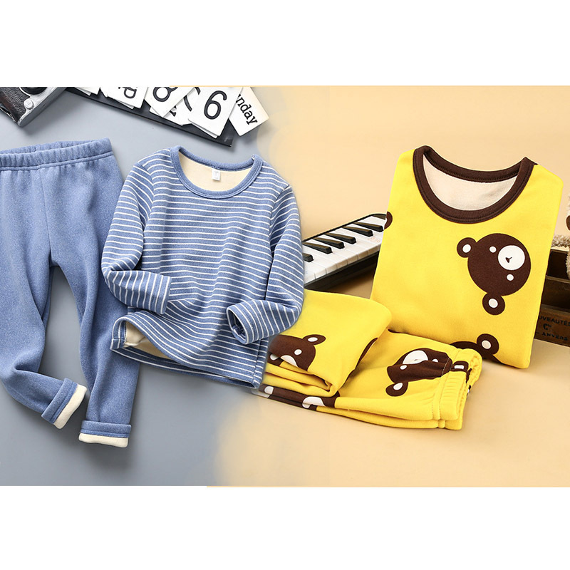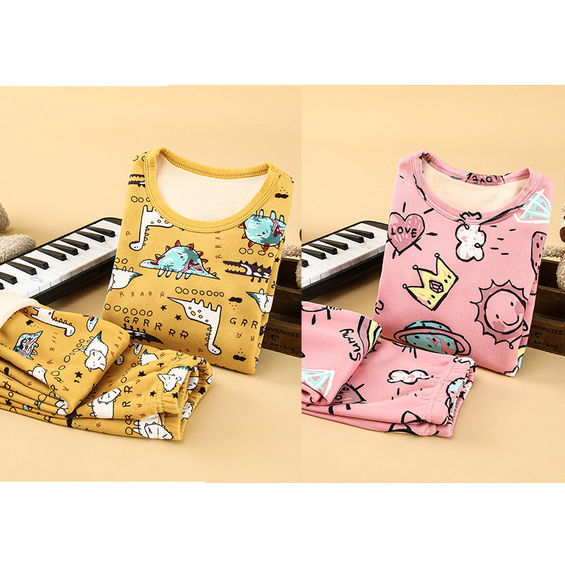 [2 세트] 어린이 열 속옷 플러스 벨벳 세트 가을 옷 가을 바지 소년 소녀 겨울 의류 베이스 투피스 세트