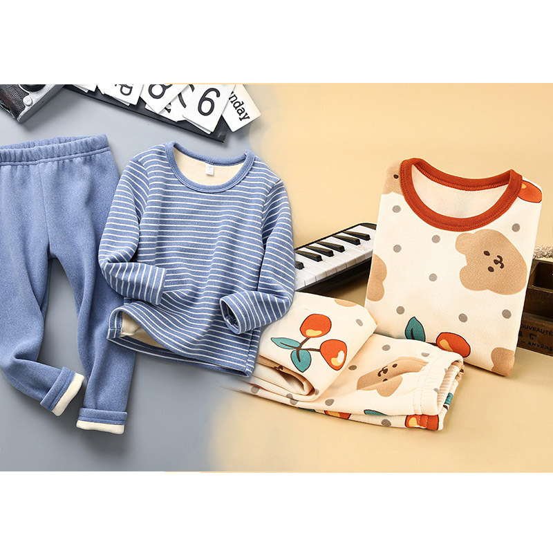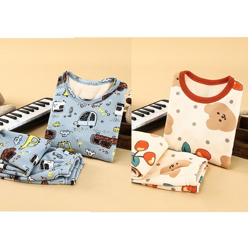 [2 세트] 어린이 열 속옷 플러스 벨벳 세트 가을 옷 가을 바지 소년 소녀 겨울 의류 베이스 투피스 세트스토어 가기