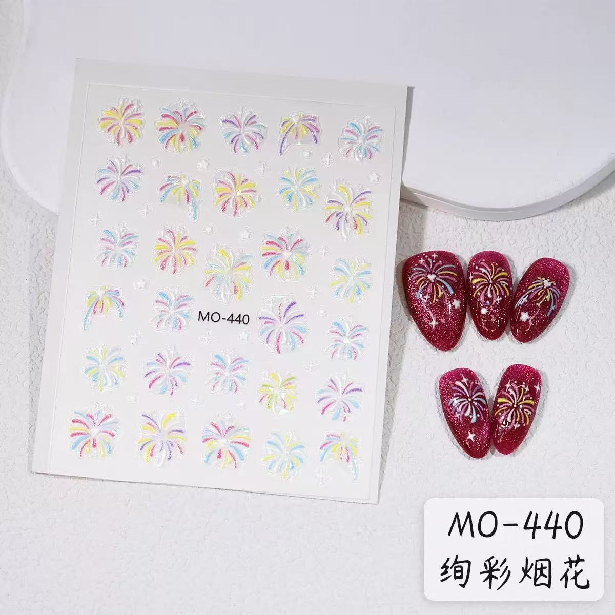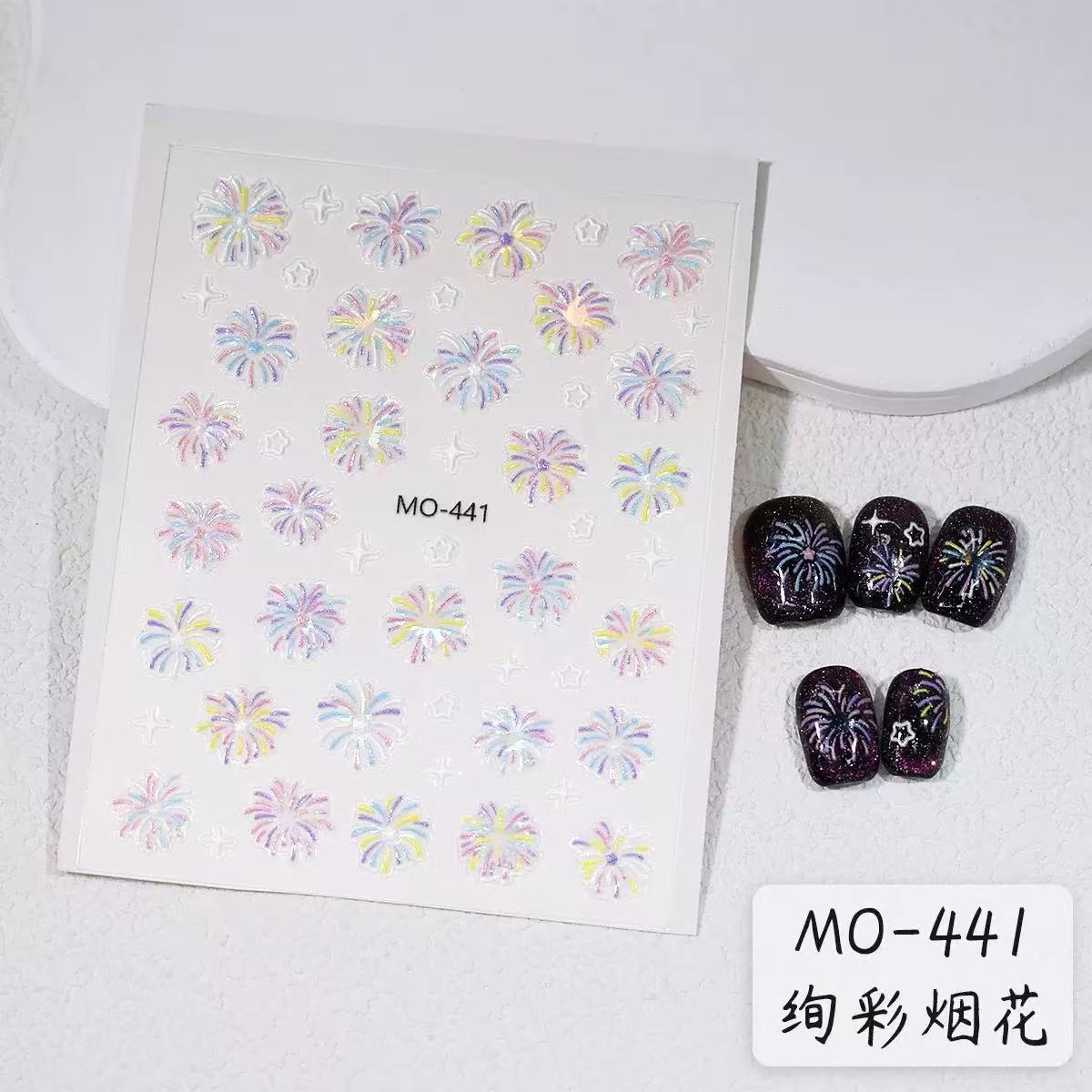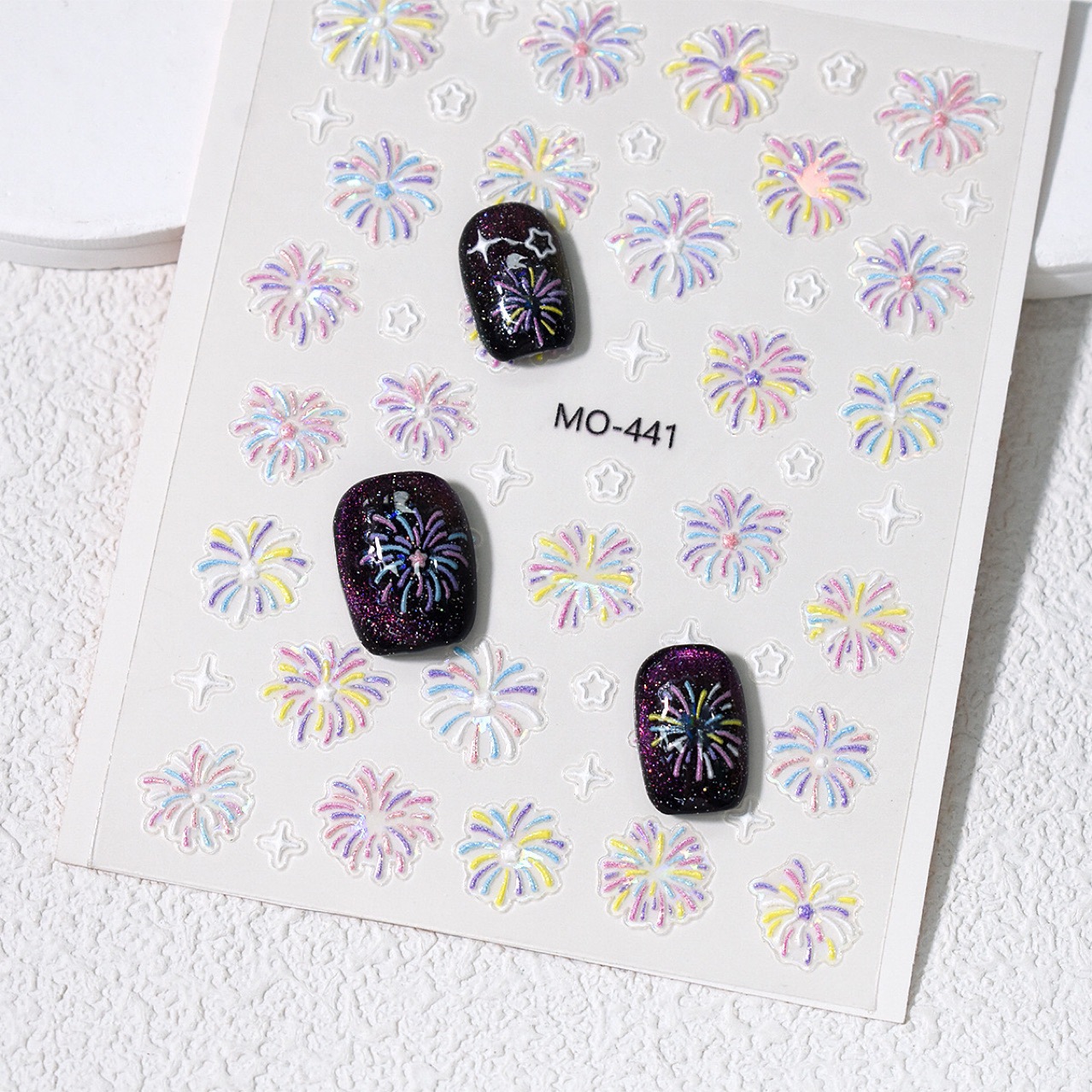 Yueji 새로운 오로라 불꽃 놀이 네일 아트 스티커 쉘 빛 화려한 불꽃 크리스마스 새해 분위기 연기 꽃 스티커스토어 가기