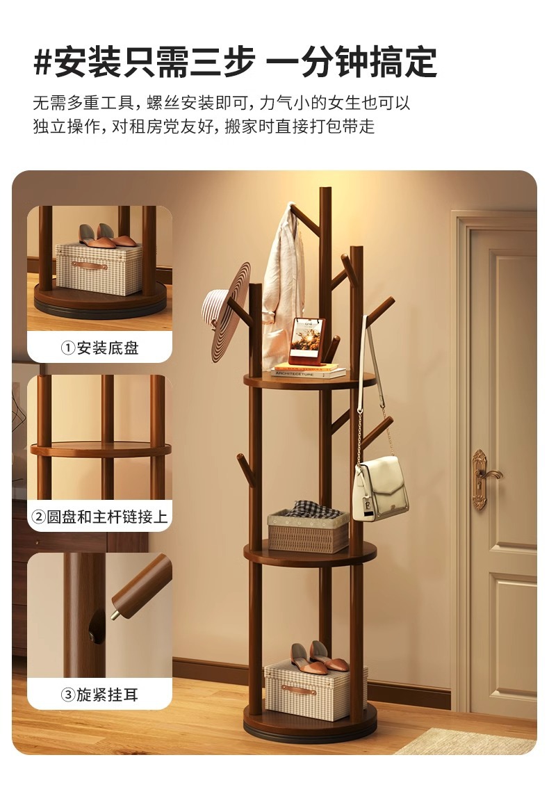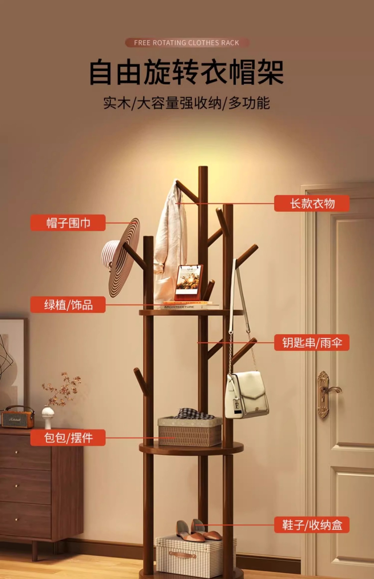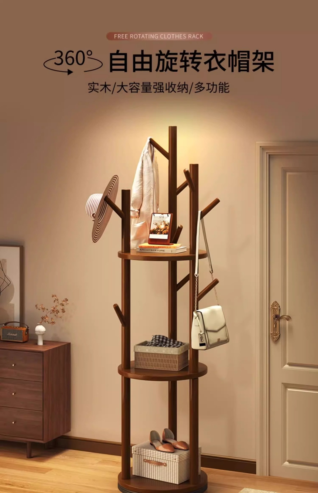 단단한 나무 회전 코트 랙 바닥 걸이 침실 가구 저장 랙 수직 옷 선반 거실 옷걸이스토어 가기