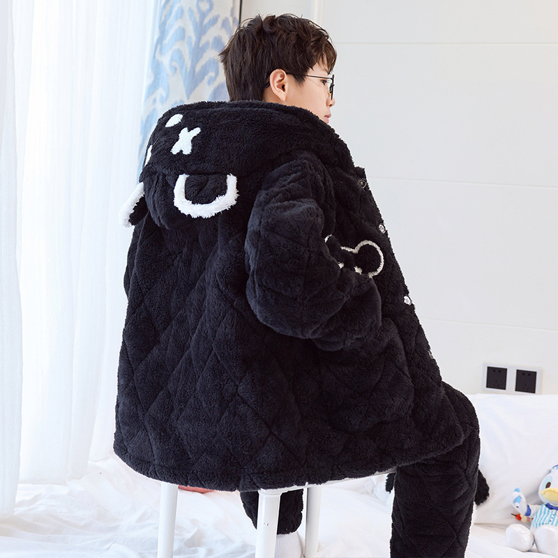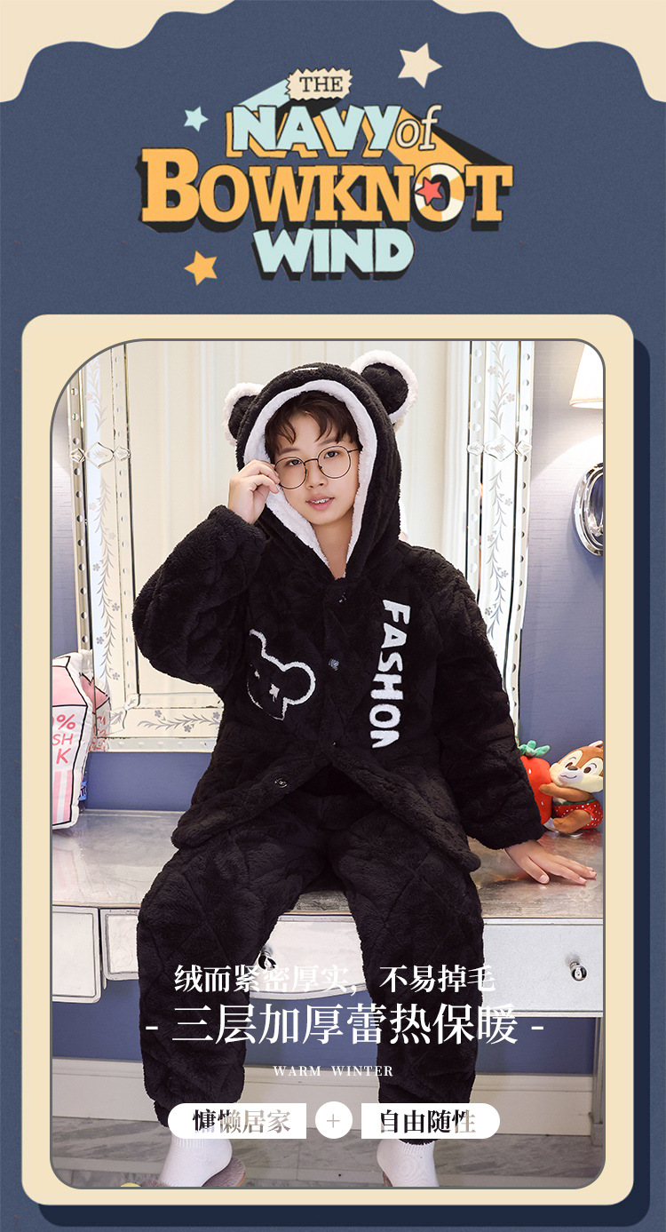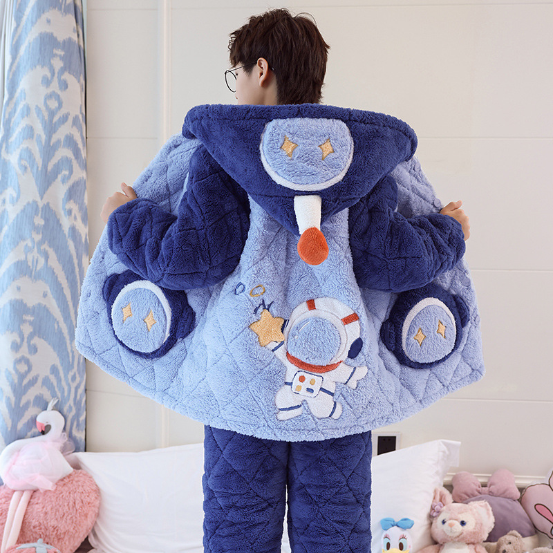 10 대 학생 소년의 겨울 3 층 퀼트 기모 두꺼운 산호 양털 어린이 잠옷 소년 홈 옷