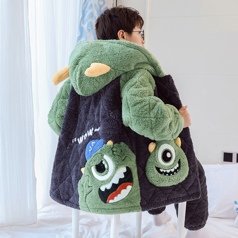 10 대 학생 소년의 겨울 3 층 퀼트 기모 두꺼운 산호 양털 어린이 잠옷 소년 홈 옷스토어 가기