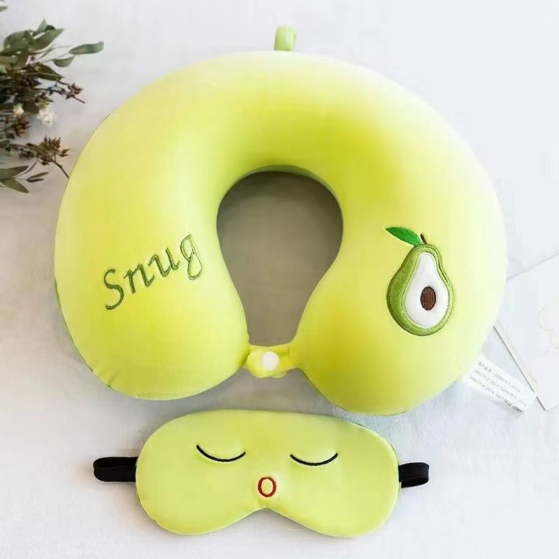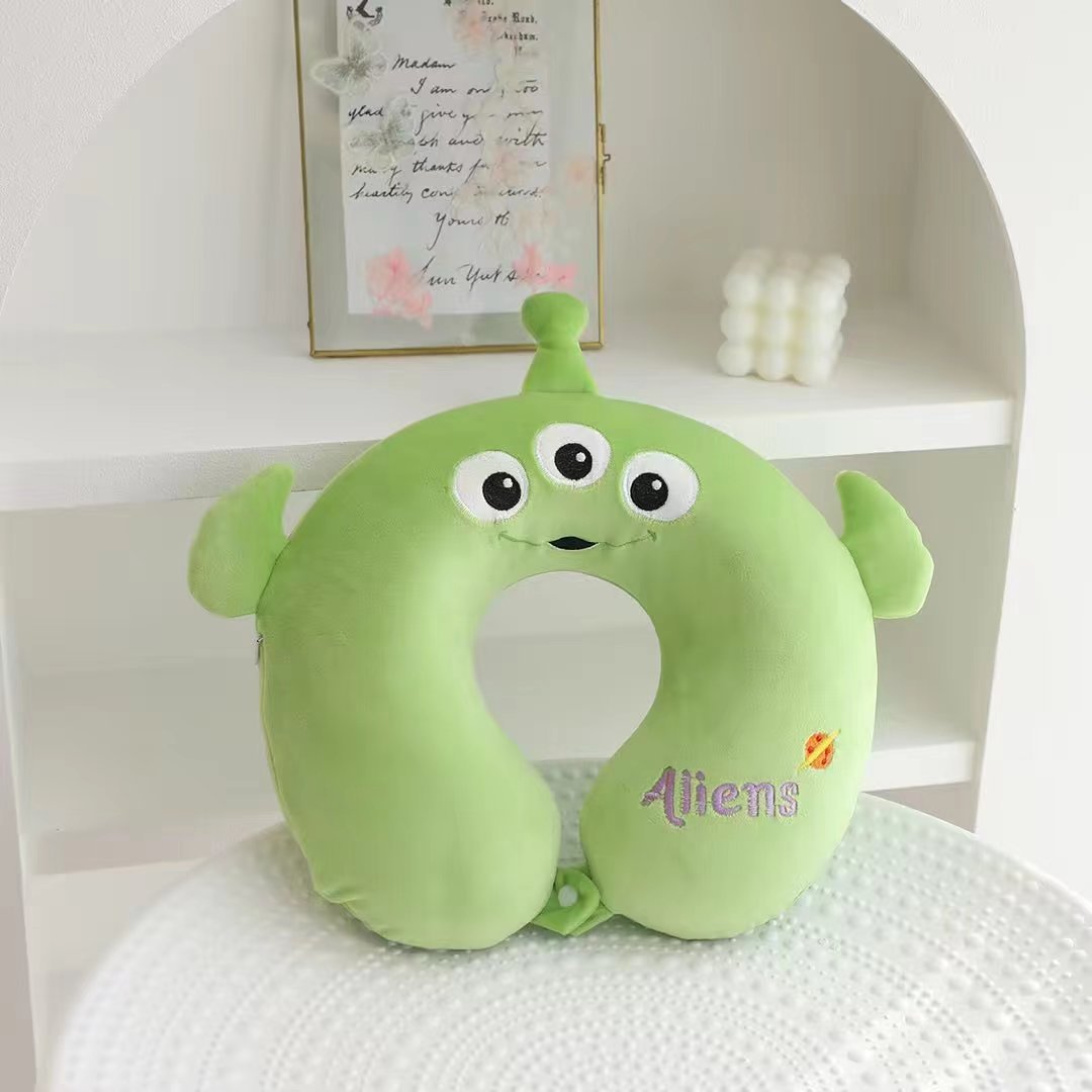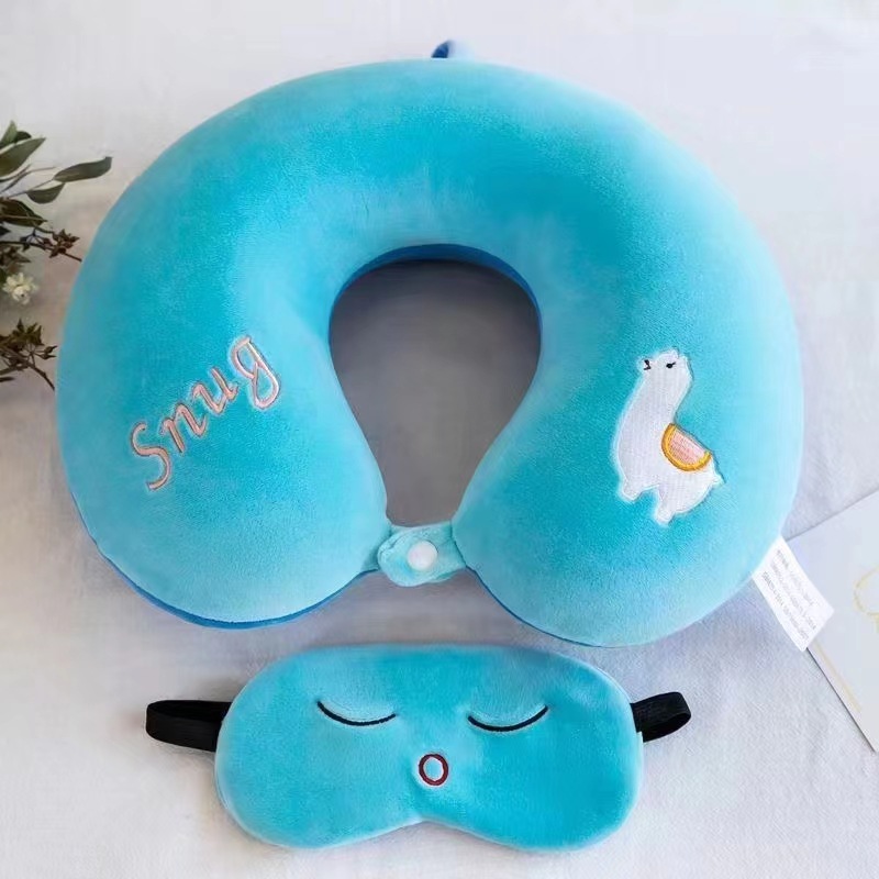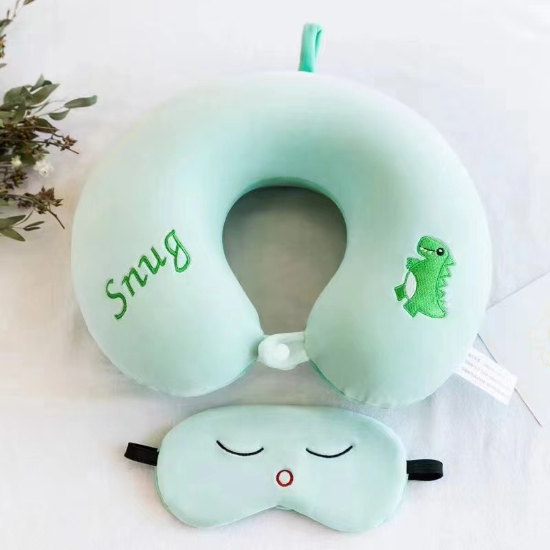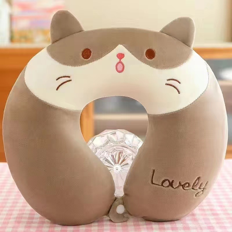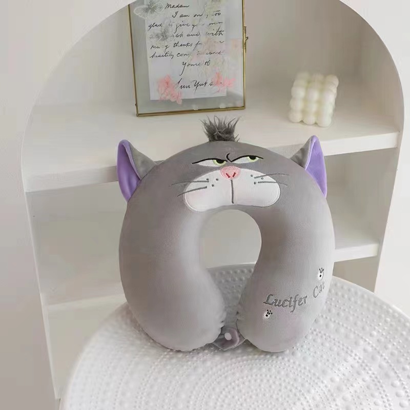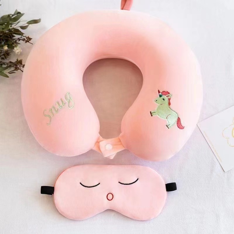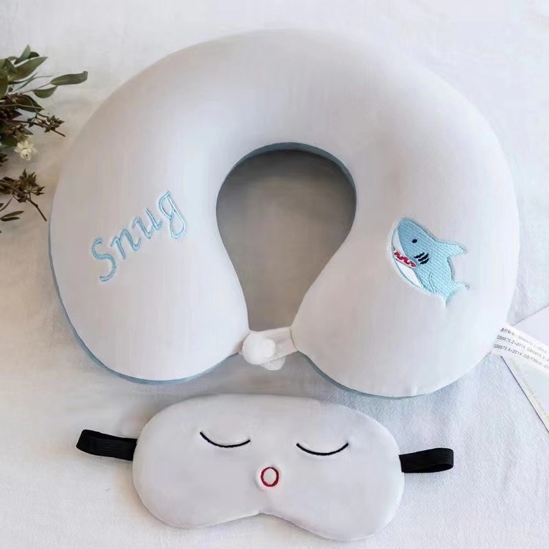 여행 운전을위한 국경 간 만화 자수 목 베개 U 자형 메모리 폼 리바운드 홈 로고 낮잠 베개