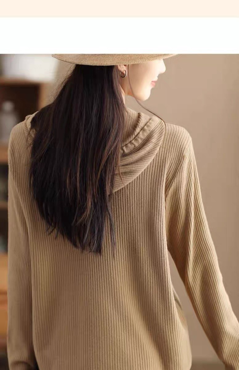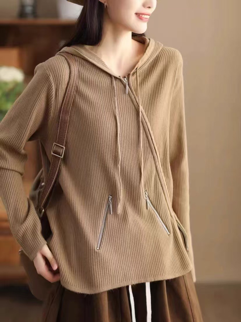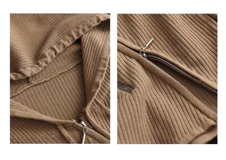 가을과 겨울 새로운 패션 후드 니트웨어 여성용 슬랜트 플래켓 더블 지퍼 재킷 핏 슬림 스웨터 카디건 152