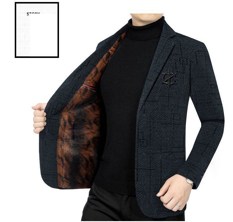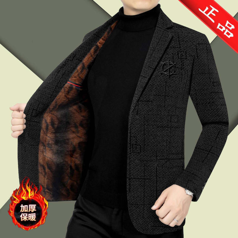 가을과 겨울 기모 세트 재킷 중년 남성 세트 칼라 재킷 캐주얼 따뜻한 두꺼운 세트 아빠 세트스토어 가기