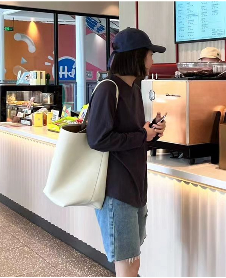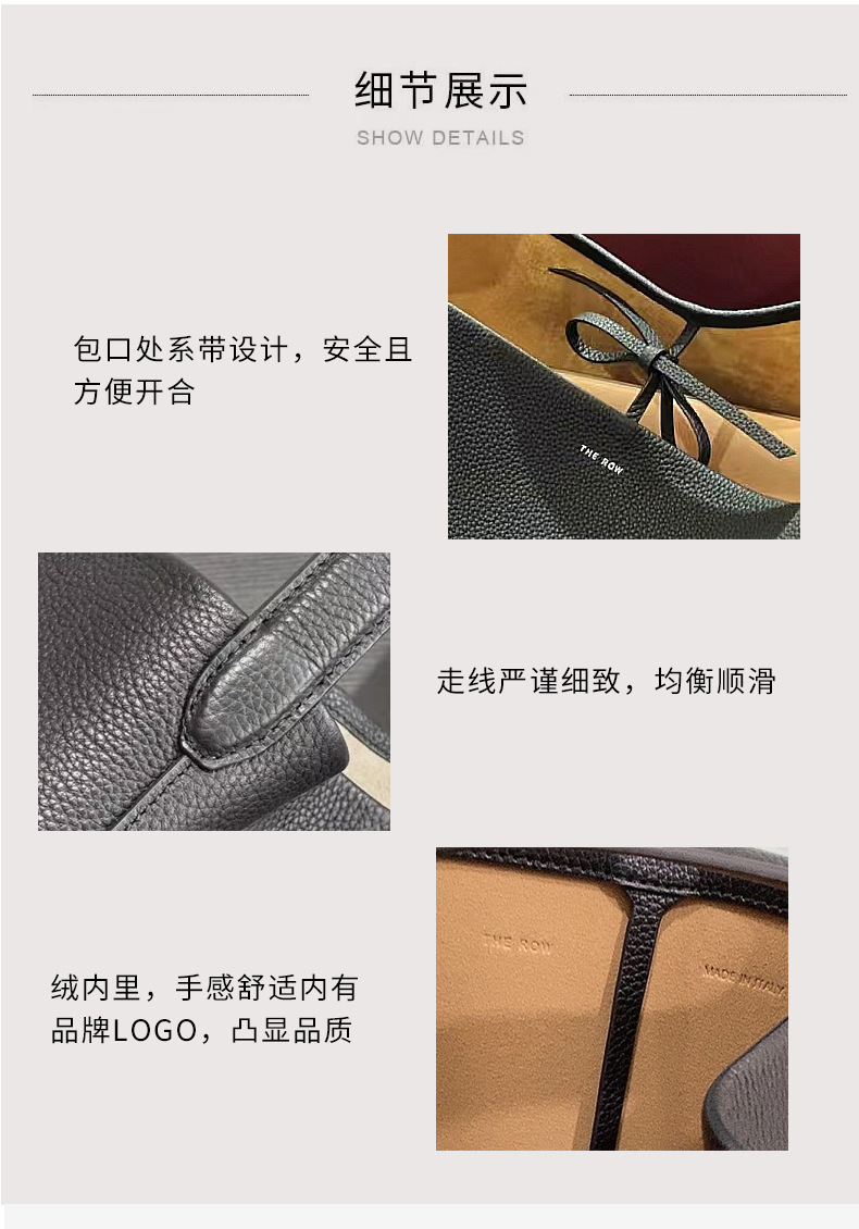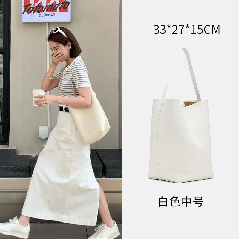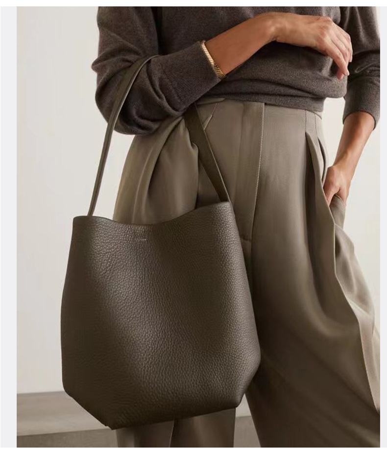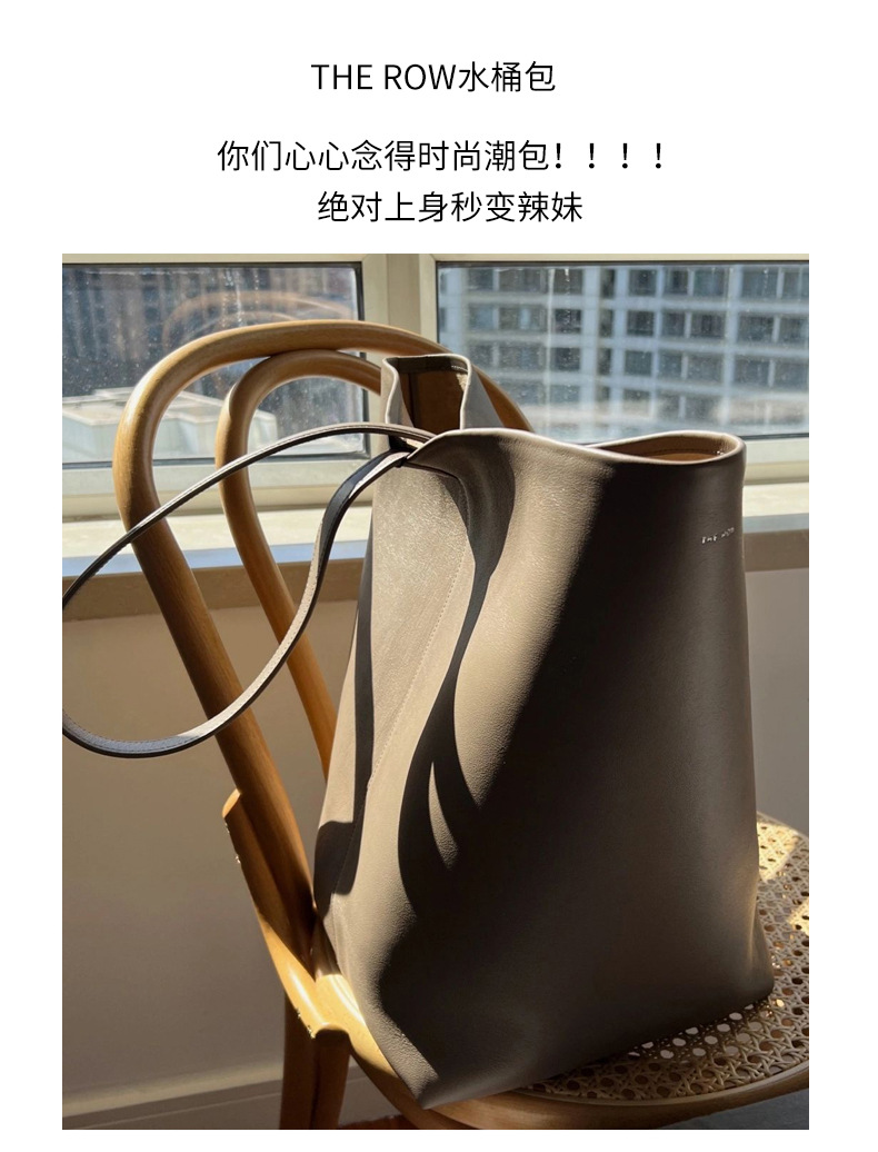 The row 버킷백 가죽 숄더 핸드백 여성용 고급 심플 대용량 소가죽 통근 토트백스토어 가기