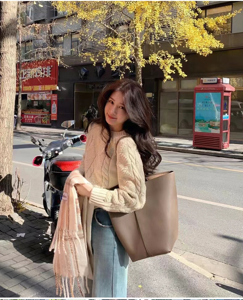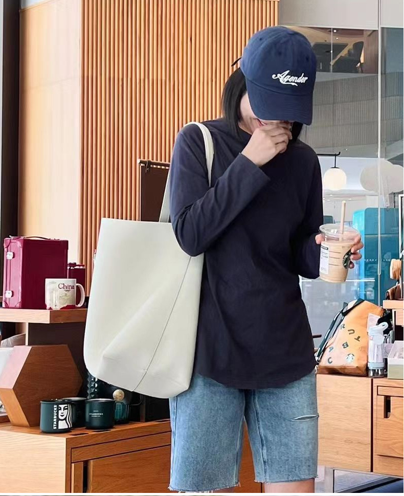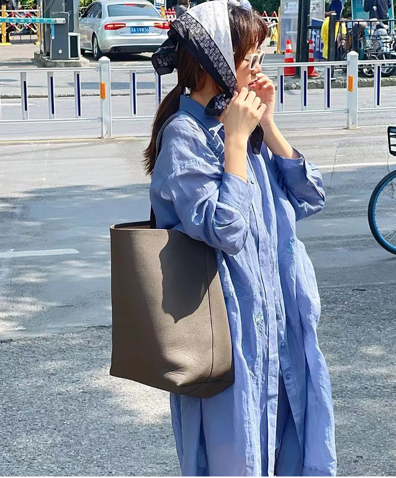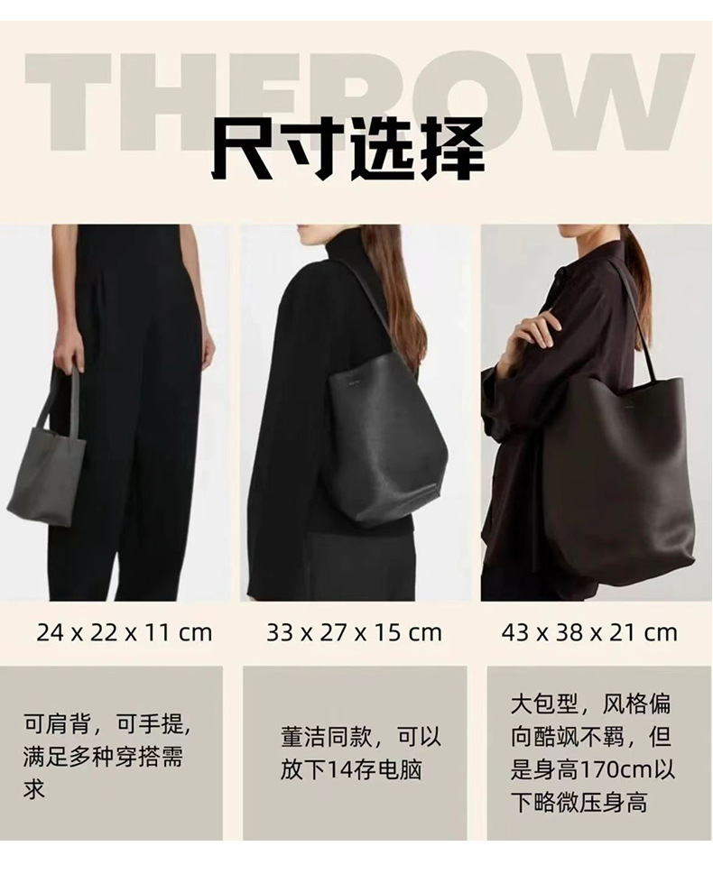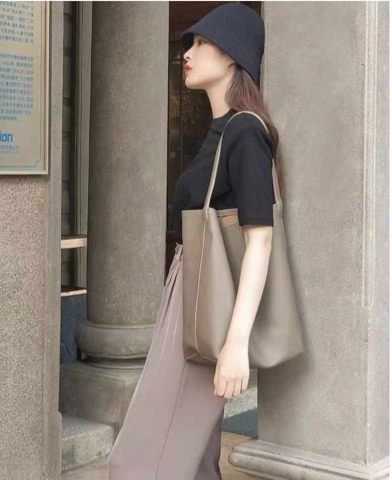 The row 버킷백 가죽 숄더 핸드백 여성용 고급 심플 대용량 소가죽 통근 토트백스토어 가기