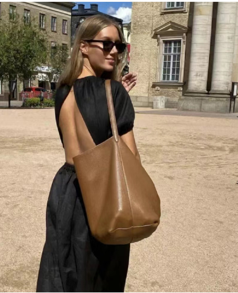 The row 버킷백 가죽 숄더 핸드백 여성용 고급 심플 대용량 소가죽 통근 토트백