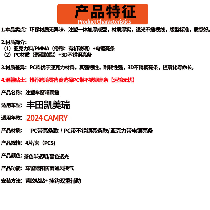 2025년형 캠리 레인 디플렉터 Toyota Camry XV80 2025 사출 성형 차량 창문 방수 캐노피