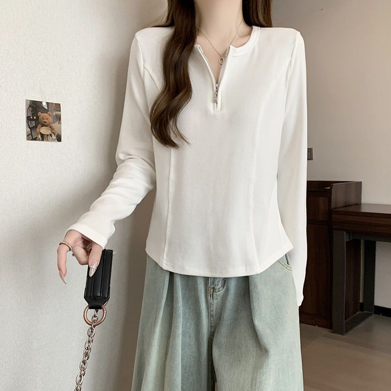 플러스 사이즈 통통녀 생선 뼈 슬리밍 반 지퍼 디자인 긴 소매 티셔츠 가을과 겨울 면화 조커베이스 코트 여성 200kg스토어 가기
