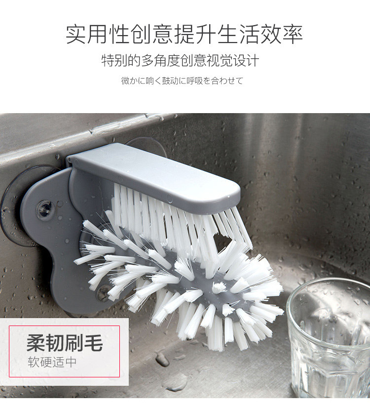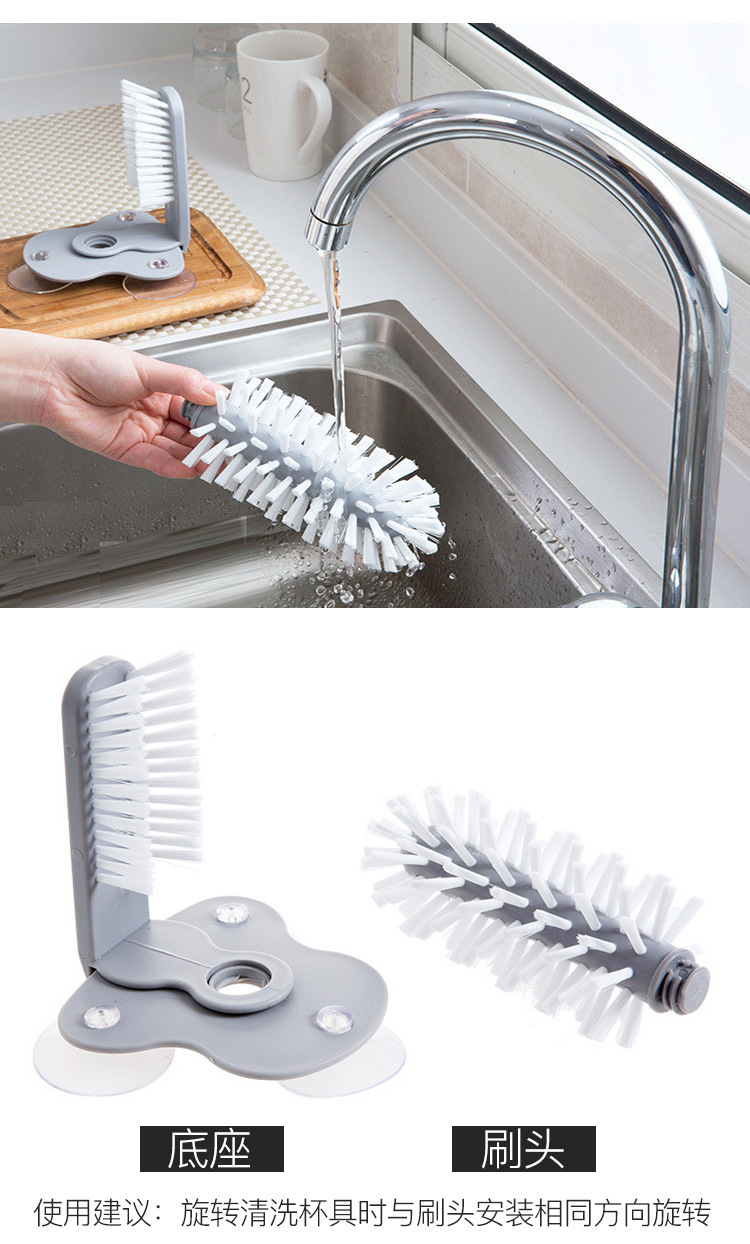 흡입 컵 세척 브러시 주방 다기능 벽 매달려 죽은 각도 게으른 자동 회전 컵 브러시 주전자 물병 세척 컵